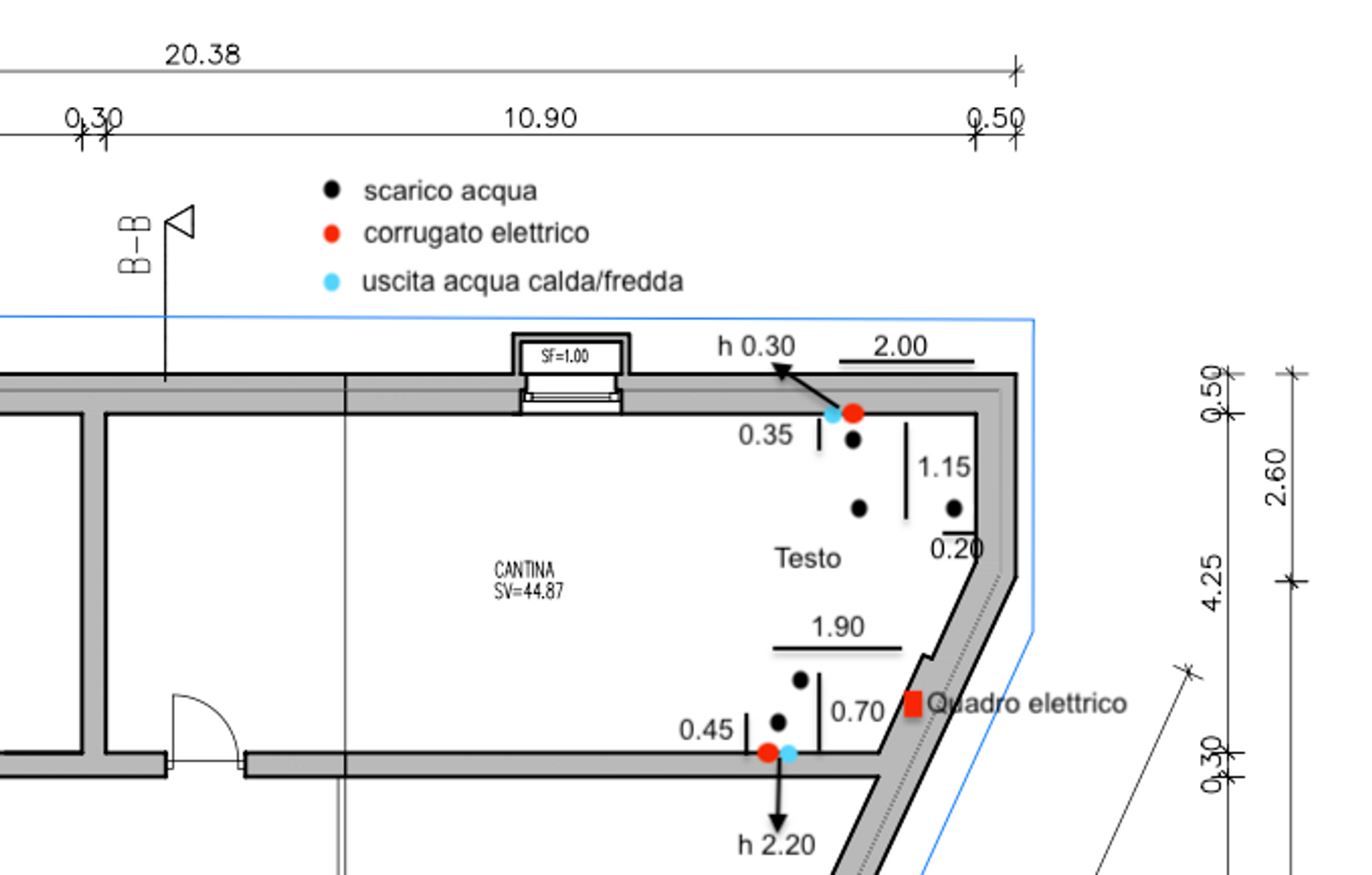 Sono già presenti alcune predisposizioni di attacco acqua, uscita corrente elettrica e scarichi. Nel locale è presente riscaldamento a pavimento quindi eventuali demolizioni della pavimentazione non sono possibili.