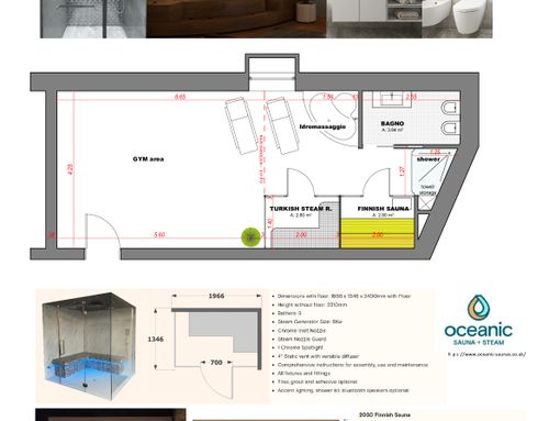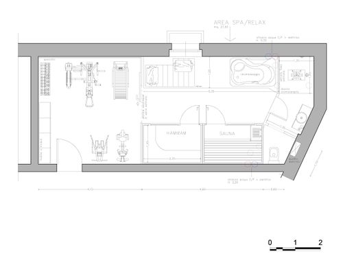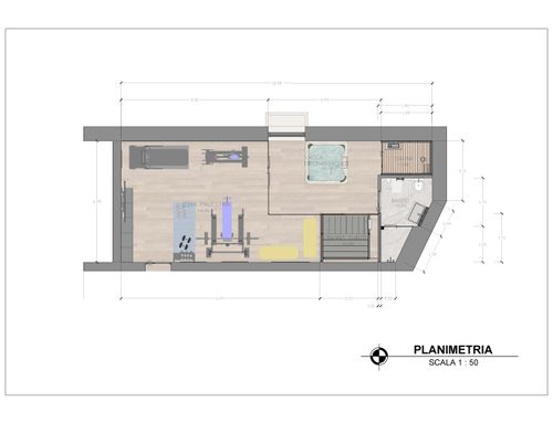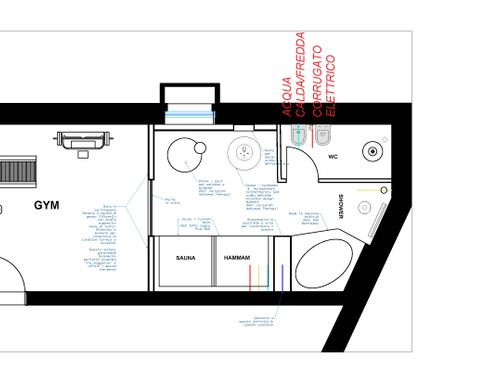 Al piano interrato ho un locale di circa 40 metri quadri dove metà è già adibito a zona palestra, e nell'altra metà vorrei realizzare una zona wellness completa di bagno, sauna, bagno turco ed eventualmente idromassaggio.