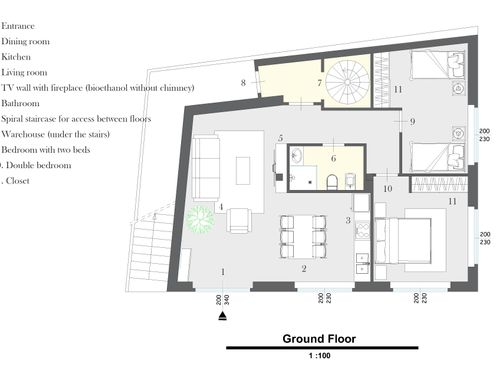 La casa e la falegnameria sottostante sono parte di una corte locata nel vecchio "centro" di Collesalvetti, nella provincia di Livorno. L'idea è di creare 2 appartamenti separati uno per ogni piano con la possibilità di collegare i due piani in una singola abitazione. Il carattere della falegnameria dovrà esser mantenuto e valorizzato, creando uno spazio unico con la possibilità di considerare anche zone soppalcate. La corte sarà destina, insieme ad una terza abitazione già in ristrutturazione, per scopi di affitto temporaneo. Ulteriori dettagli verranno proposti durante l'esecuzione dei lavori.