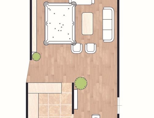 Per i pavimenti del soggiorno e sala da pranzo valutiamo qualsiasi materiale, anche se prediligiamo il parquet o il gres porcellanato.