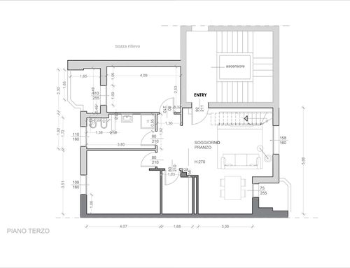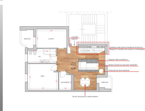 Il problema principale è la presenza di una scala piuttosto ingombrante, si pensava infatti di fare un restyling e magari chiudere il vano scale con un cartongesso in quanto lo spazio del sottoscala non è sfruttabile.