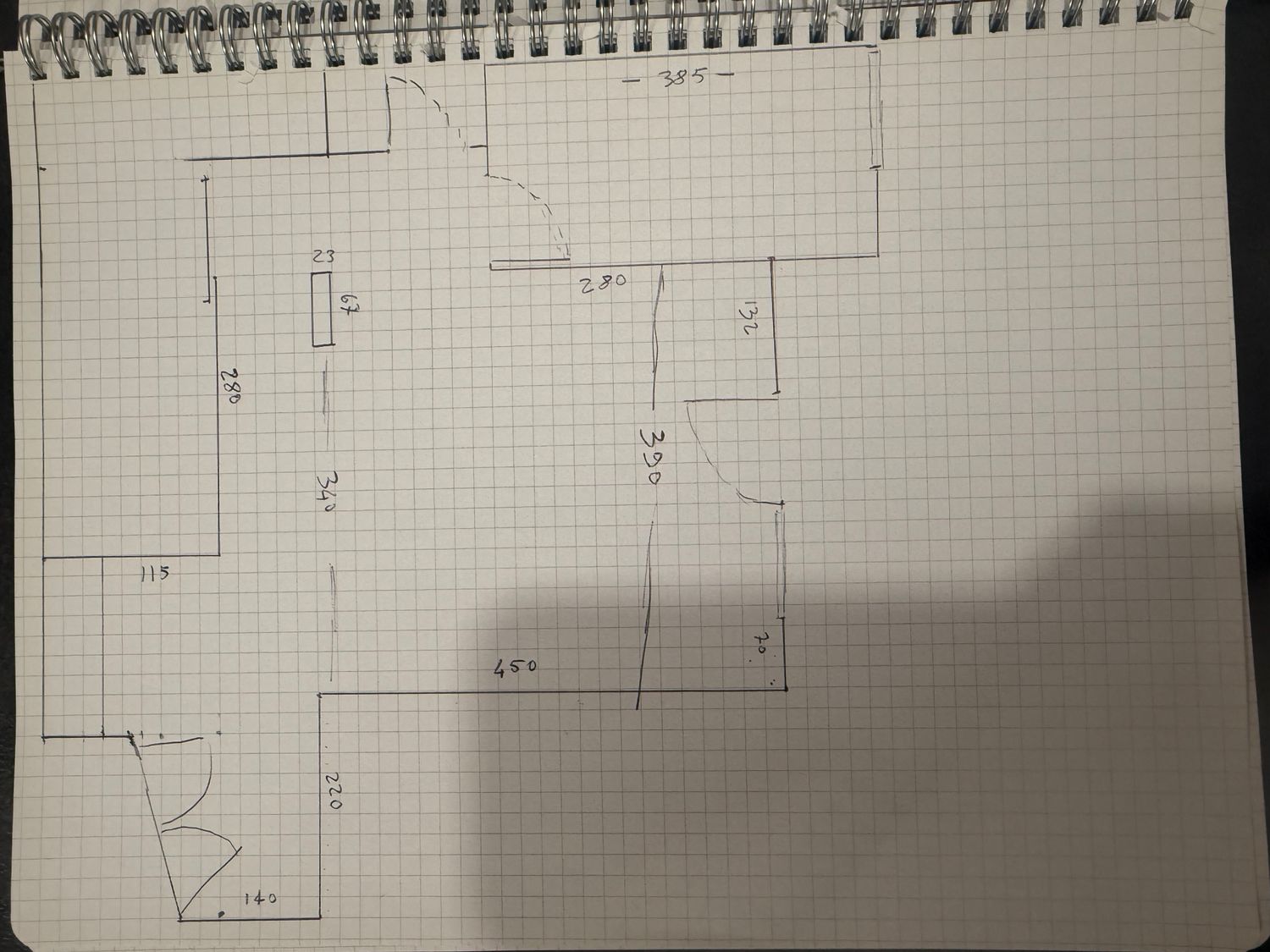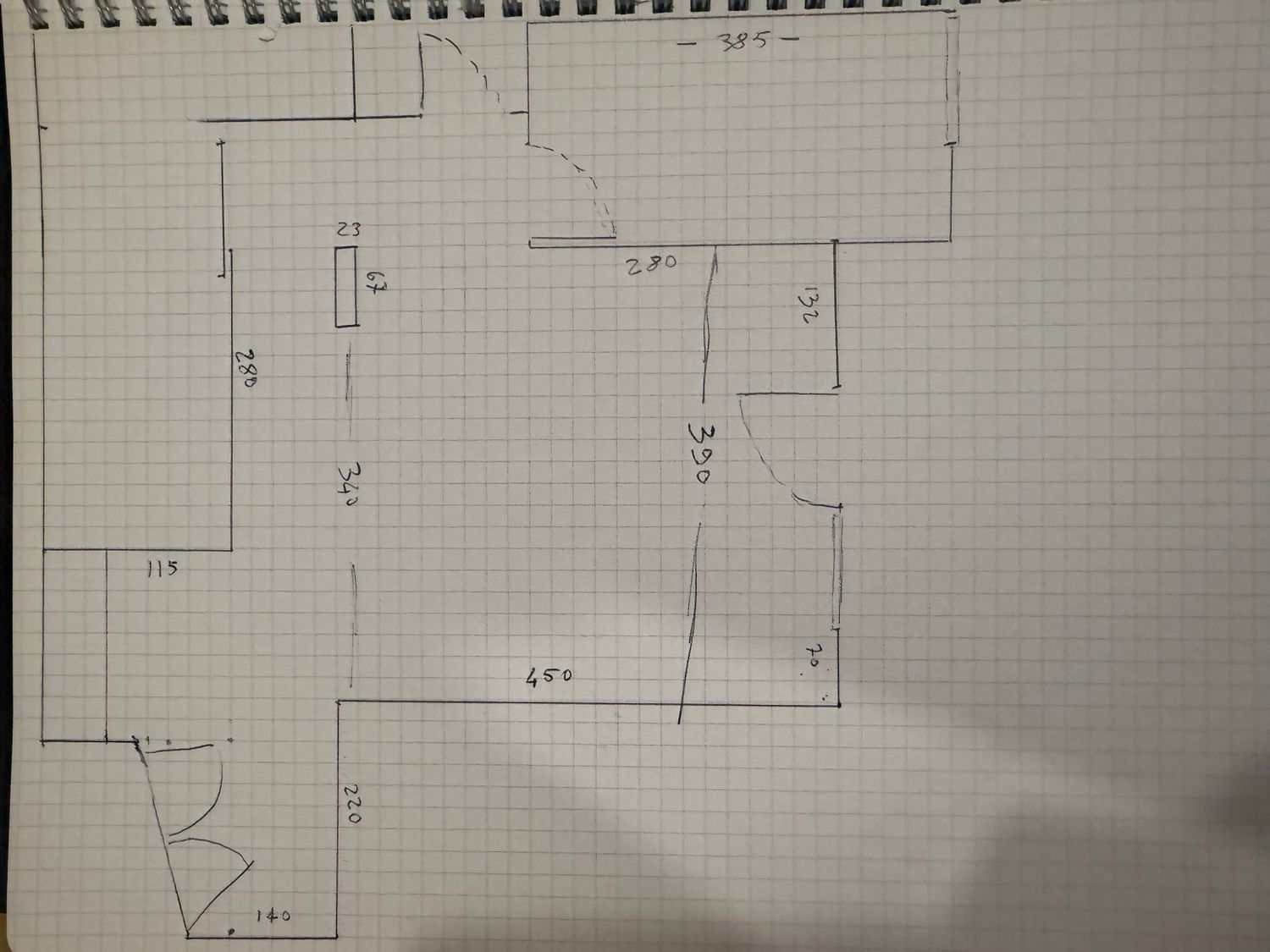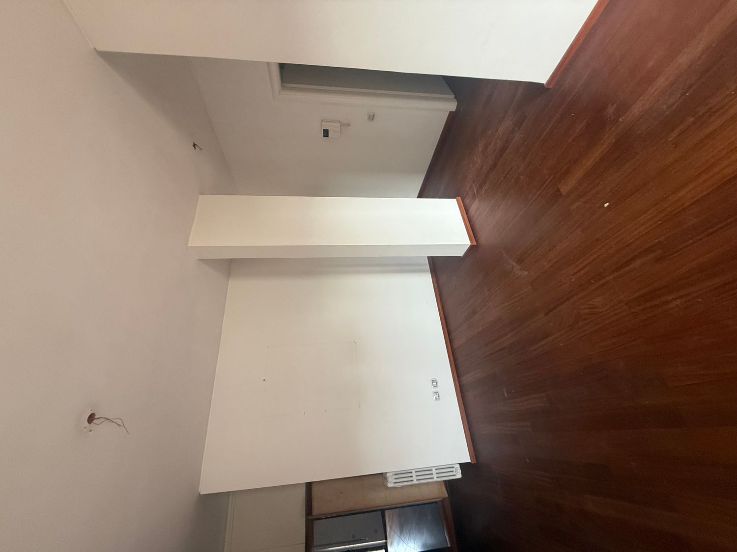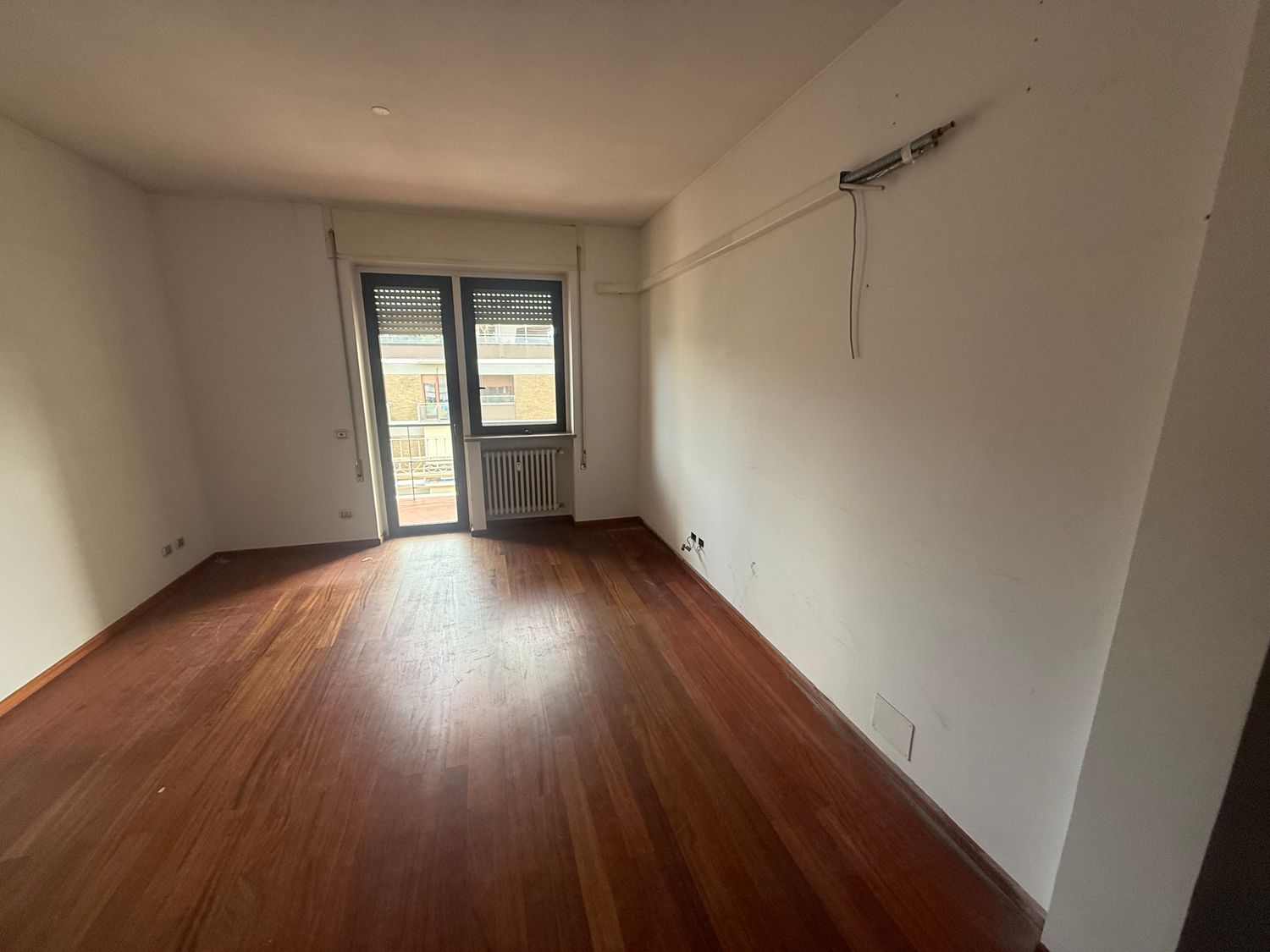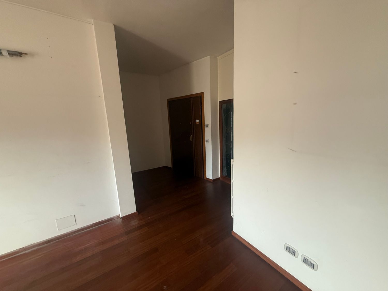 I want to furnish the kitchen and living room by creating permeability between the two spaces without demolishing the entire dividing wall, but rather with an opening, an internal window, or a glass partition in the wall, so that the flooring (red resin in the kitchen and wood in the living room) can remain different.