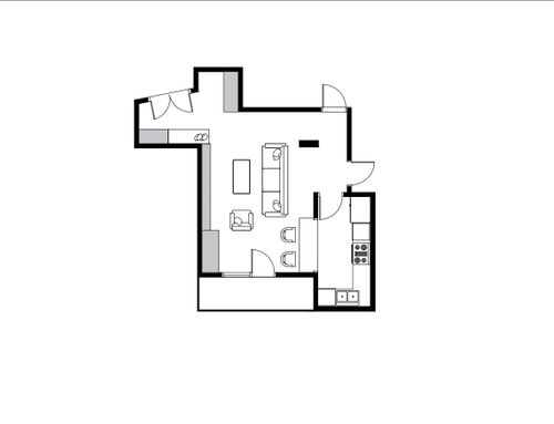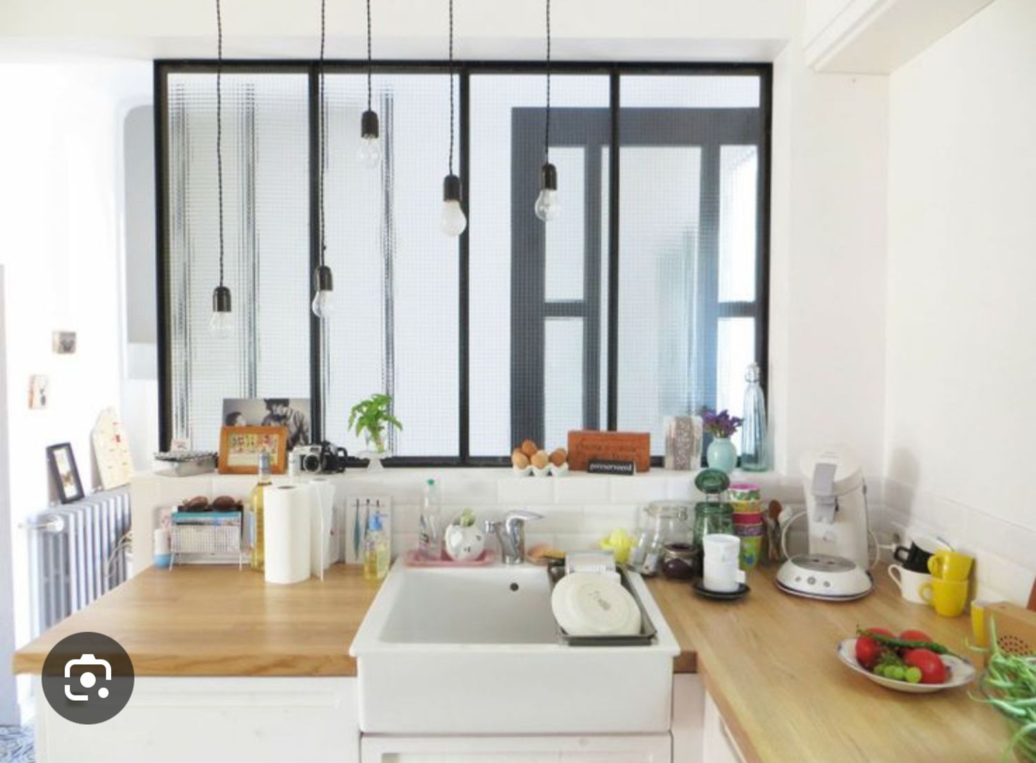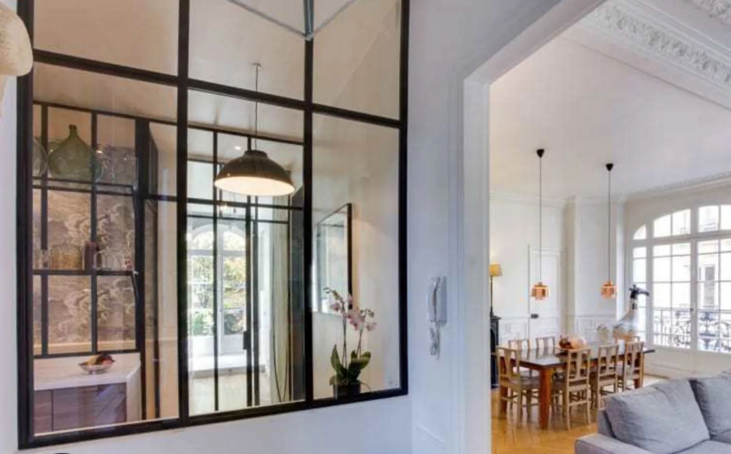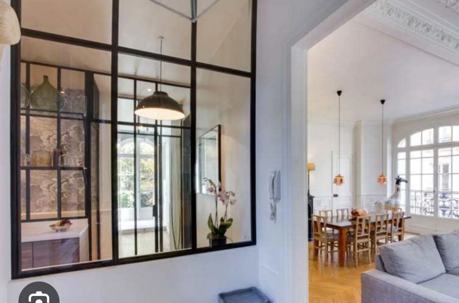 You have complete freedom for the walls, the entrance, and the kitchen, where I would like a vintage fridge, possibly red.