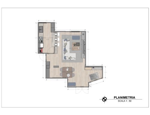La presencia de una televisión es útil pero no imprescindible. No me importaría tener una pared pintada de negro o al menos de un tono oscuro. Me gusta el estilo industrial, pero con piezas de diseño y soluciones llamativas y coloridas. Me encantaría que la cocina tuviera muebles independientes, una especie de estilo libre, en lugar de la típica cocina modular. Sin embargo, no quiero un estilo rústico, de "arte povera" (arte pobre) ni shabby chic. En general, quiero un estilo muy masculino con acentos industriales, toques de color, mucho diseño y toques de alta tecnología. Es absolutamente necesario evitar el efecto "casa de campo", tanto en el salón como en la cocina.