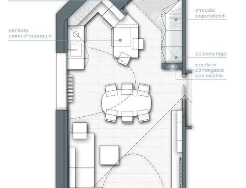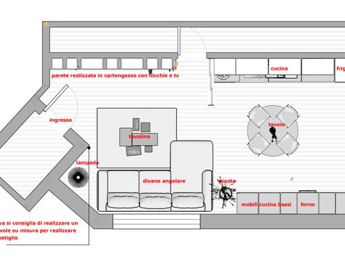 avremmo bisogno di rivedere completamente la zona giorno della nostra mansarda in modo che con il tempo e per fasi successive potremo sostituire gli arredi esistenti e se necessario potremmo anche affrontare delle modifiche con demolizioni/costruzioni.