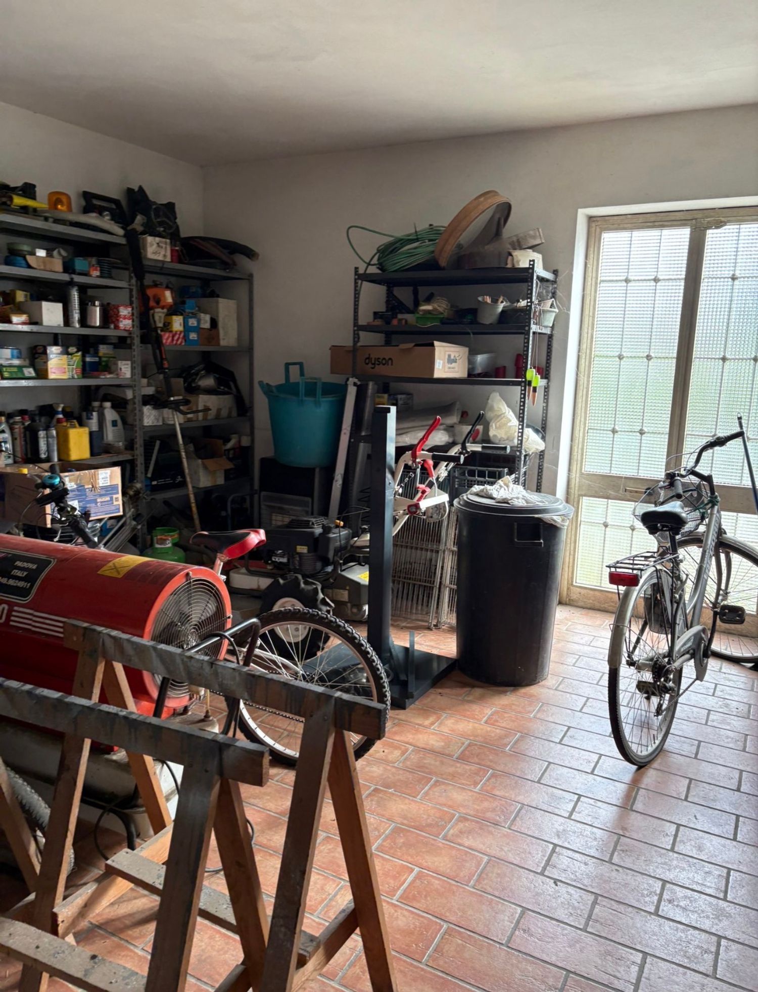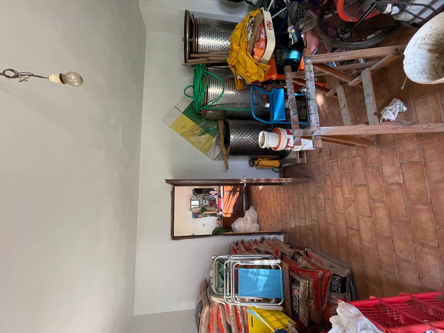 Mentre dove ora ci sono tutti quei sacchi di pellet é la zona dove potrei metterci una stufa a pellet ( visto che dietro quel muro ci passa una canna fumaria ) avrei già lo scarico dei fumi comodo .