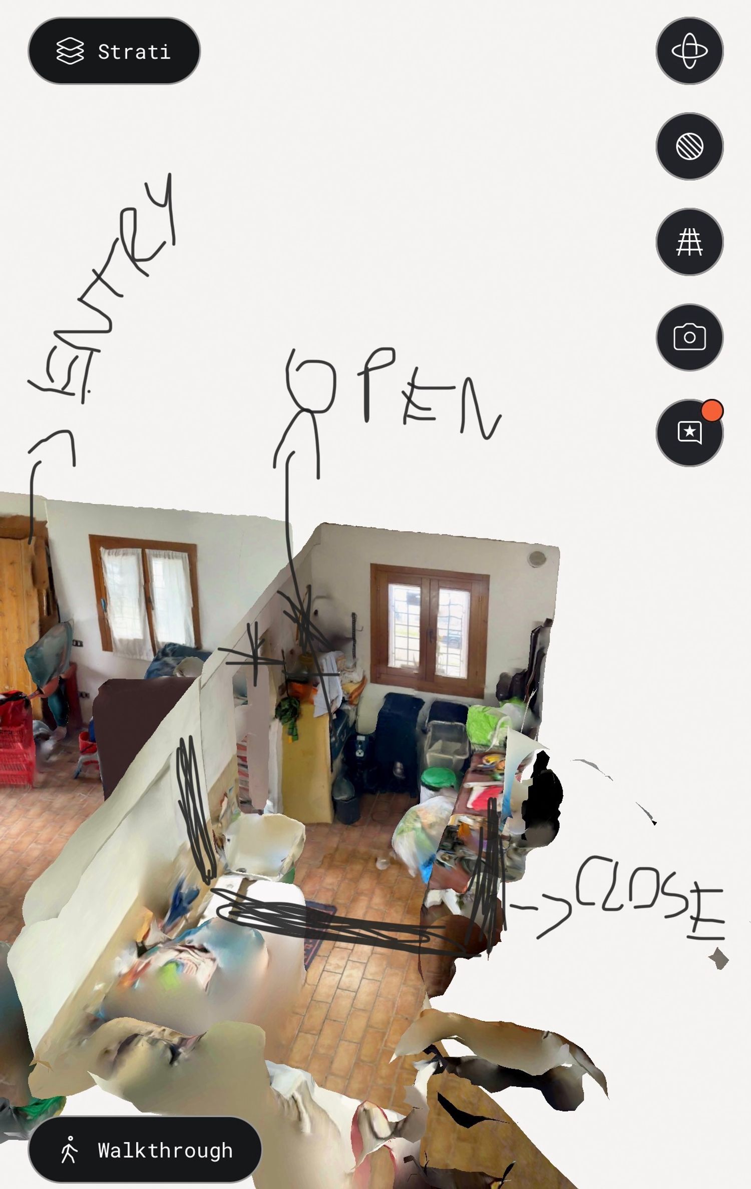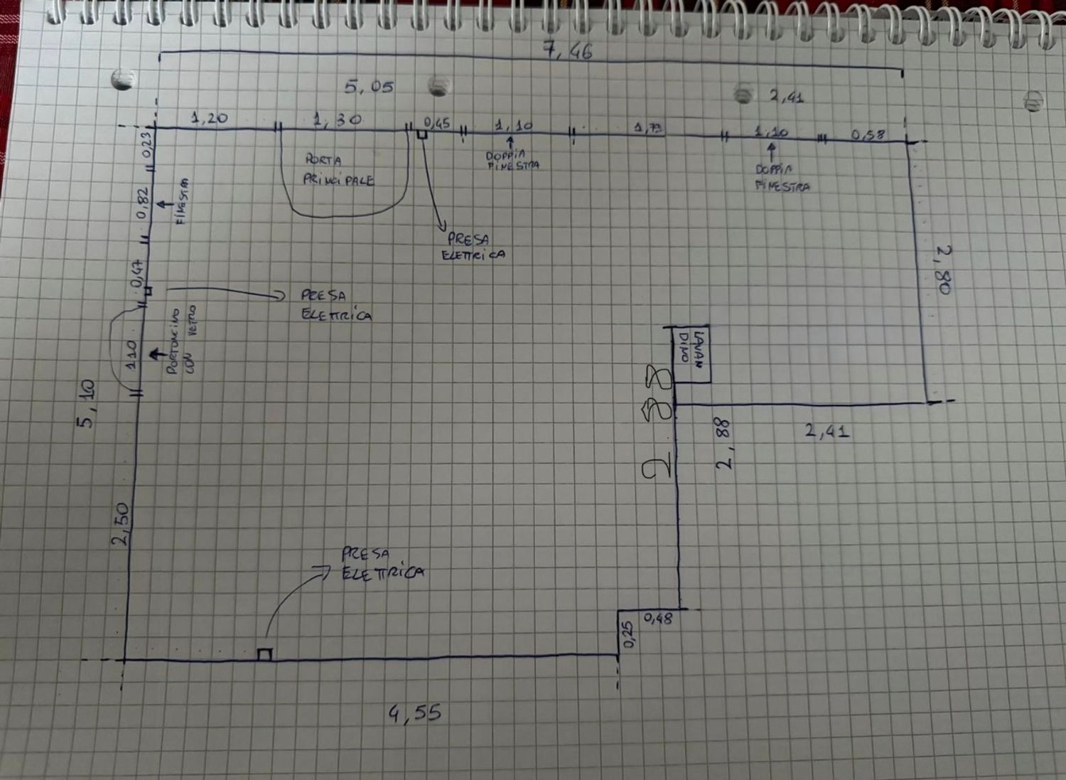Poi in una zona più piccola che ricavo , farci una palestra , ho segnato con le "X" il pezzo di muro che vorrei togliere insieme alla porta in metallo , per dare più ampiezza alla stanza .