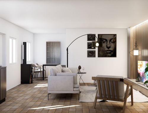 In cerca di idee per una stanza che ora è adibita a deposito , l'idea sarebbe quella di renderla una bella zona relax con divano , tv , parete tv dove metterci sound bar ecc , un tavolo magari allungabile per occupare meno spazio da chiuso e se rimane un pò di spazio , un angolo dove poter posizionare una caffettiera per esempio , il tutto in una chiave moderna ma senza esagerare, ho un pavimento in cotto ( che cambierei con pavimento in spc effetto palquet ) però vorrei lo stesso creare un ambiente moderno che ci possa stare bene .