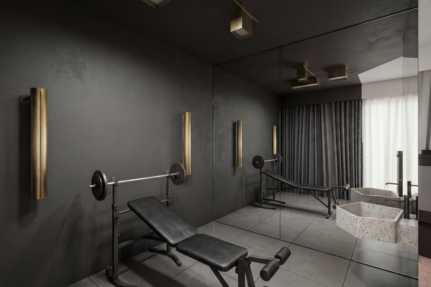 Il progetto nasce dalla volontà di mettere in relazione due anime opposte ma complementari dello spazio: da un lato la zona lounge, legata a ritmi lenti, dilatati e contemplativi; dall’altro la palestra, luogo dell’intensità , dello sforzo e della massima concentrazione fisica.