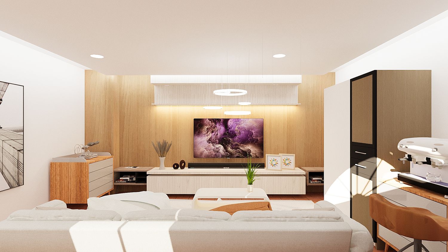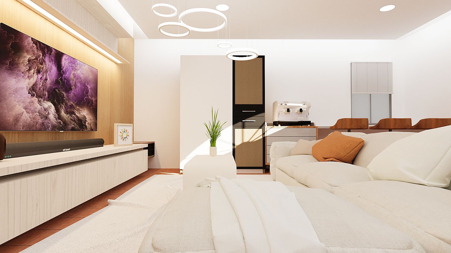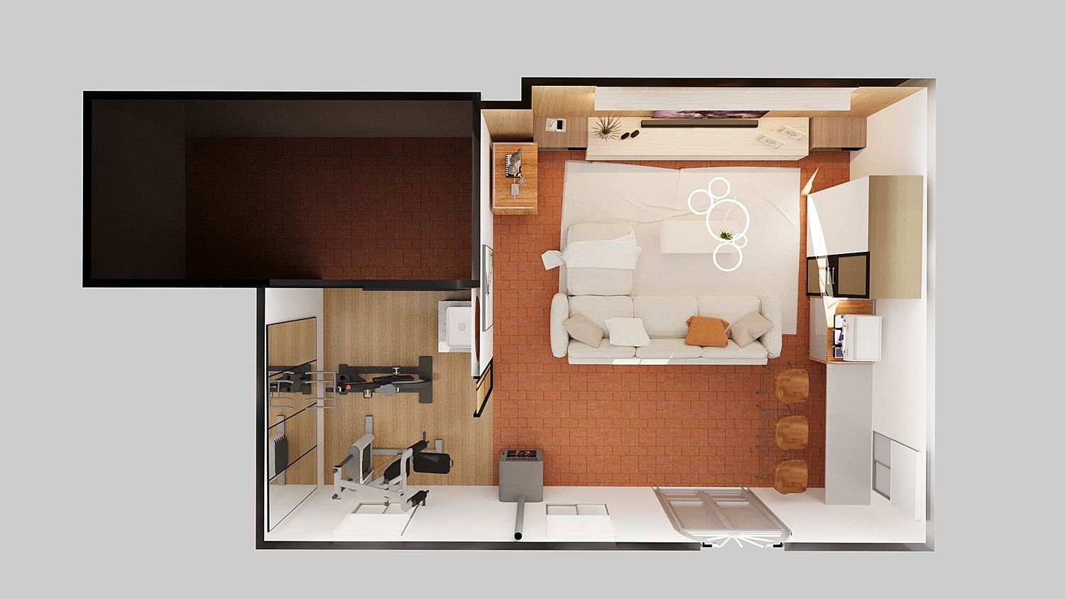 This design preserves the existing terracotta flooring to maintain its natural warmth and character, creating a timeless and grounded atmosphere throughout the main living areas. To enhance functionality and durability, SPC flooring is selectively applied in the gym area, providing better resistance to impact, moisture, and daily physical activities.