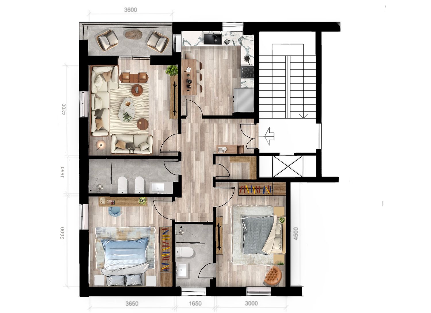 • Ergonomic Efficiency: A clever layout detailing wall positions, door swings, and plumbing groupings to ensure practical and cost-effective construction.