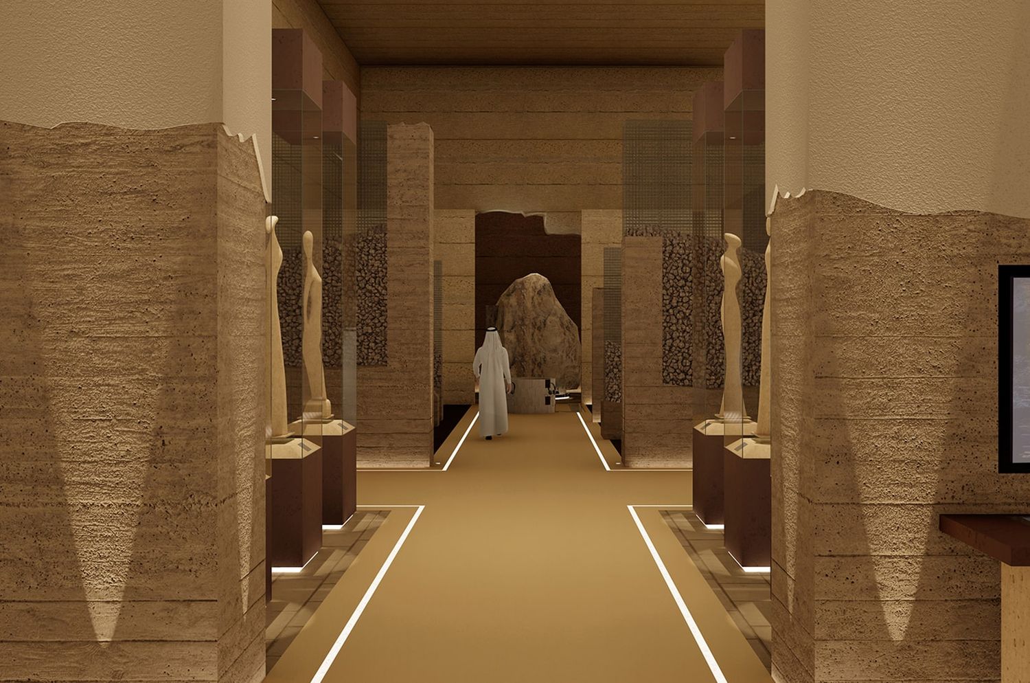 The Qaryat Al Faw museum in Saudi Arabia is a true masterpiece of design, seamlessly blending modern technology with ancient ruins and artifacts to create an immersive experience like no other. The museum’s design is a stunning example of sleek and contemporary architecture that preserves the ancient mood of the city. The lighting design is particularly noteworthy, expertly illuminating the exhibits and highlighting the unique features of each artifact, while also enhancing the overall atmosphere of the museum. The use of humble, locally-sourced materials gives the museum a sense of authenticity and continuity with the ancient city it celebrates. Through an interactive and sensory experience, visitors are transported back in time to experience the life and culture of the ancient city of Qaryat Al Faw in a truly unforgettable way.