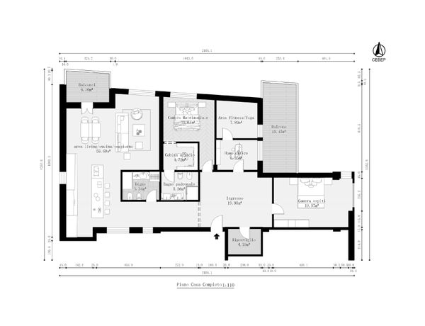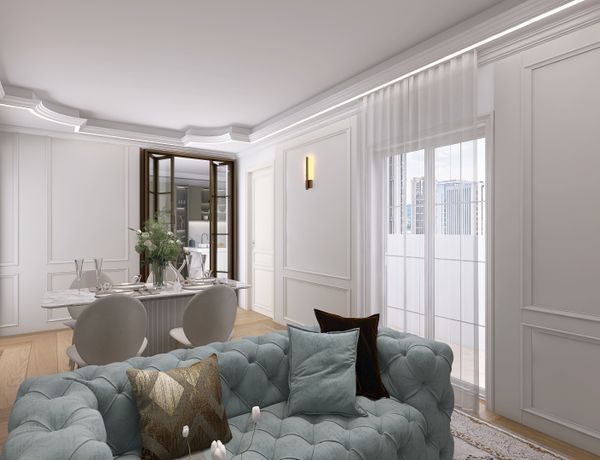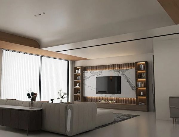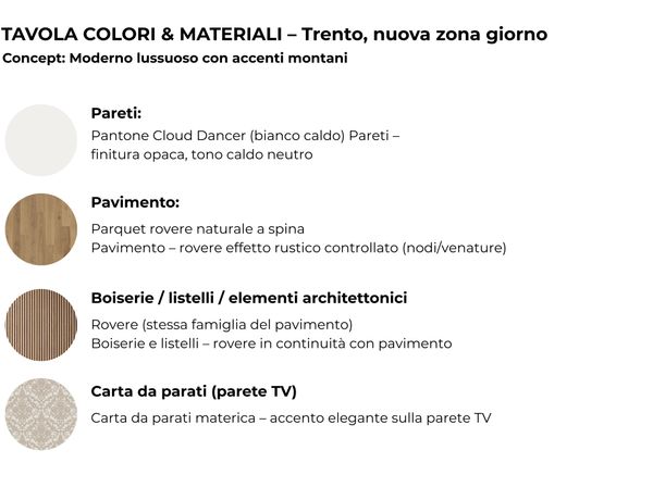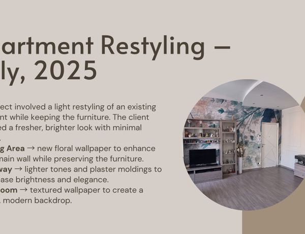 Progetto di Restyling della Zona Giorno - Villetta Unifamiliare Obiettivo del Restyling L’intervento mira a trasformare la zona giorno della villetta in un ambiente moderno ed elegante, con un perfetto equilibrio tra materiali naturali, dettagli contemporanei e un’illuminazione sofisticata. Lo stile scelto è un mix tra minimalismo raffinato e calore domestico, ottenuto attraverso l’uso di tonalità neutre, contrasti materici e un'attenta progettazione degli arredi e delle luci.Zona LivingIl soggiorno è stato pensato per garantire un’atmosfera accogliente e raffinata, con un focus su materiali pregiati e un'illuminazione d’accento. Il cuore dello spazio è costituito dall’area TV con una parete in marmo venato e listelli di legno retroilluminati, che conferisce profondità ed eleganza alla composizione.Materiali e Palette Colori Toni principali: Bianco caldo, beige, legno naturale, dettagli scuri per contrasto. Materiali: Marmo con venature grigie, legno naturale per le boiserie, metallo nero per dettagli contemporanei.Elementi di design Parete TV scenografica: Marmo con retroilluminazione e nicchie laterali con scaffali in legno e LED integrati. Divano di design: Un’ampia seduta modulare color crema con dettagli curvi per un comfort ottimale. Madia moderna: Posizionata sulla parete laterale con un design ondulato, valorizzata da quadri astratti e decorazioni essenziali. Illuminazione: Applique verticali a luce calda per un effetto scenico ed elegante.Zona Cucina & PranzoLa cucina è stata progettata in open space per garantire continuità con il soggiorno, mantenendo un layout funzionale e armonioso. Il contrasto tra il nero opaco delle basi e il legno naturale del soffitto dona carattere ed equilibrio allo spazio.Materiali e Palette Colori Toni principali: Nero, legno naturale, grigio caldo e dettagli in metallo. Materiali: Marmo nero venato per il top cucina e lo schienale, legno naturale per il soffitto e alcuni elementi di arredo.Elementi di design Cucina a vista con isola: Basi nere opache con piano in marmo scuro, pensili in vetro fumé e una zona snack integrata. Illuminazione d’atmosfera: Strisce LED sotto le basi della cucina e faretti incassati nel soffitto in legno. Zona pranzo con tavolo moderno: Tavolo in legno con sedute in tonalità neutre e intrecci naturali per un tocco sofisticato.Il restyling della zona giorno ha trasformato l’ambiente in uno spazio raffinato, moderno e accogliente, perfettamente bilanciato tra estetica e funzionalità. L’uso sapiente di materiali di pregio e un'illuminazione ben studiata donano alla villetta un look contemporaneo e senza tempo.