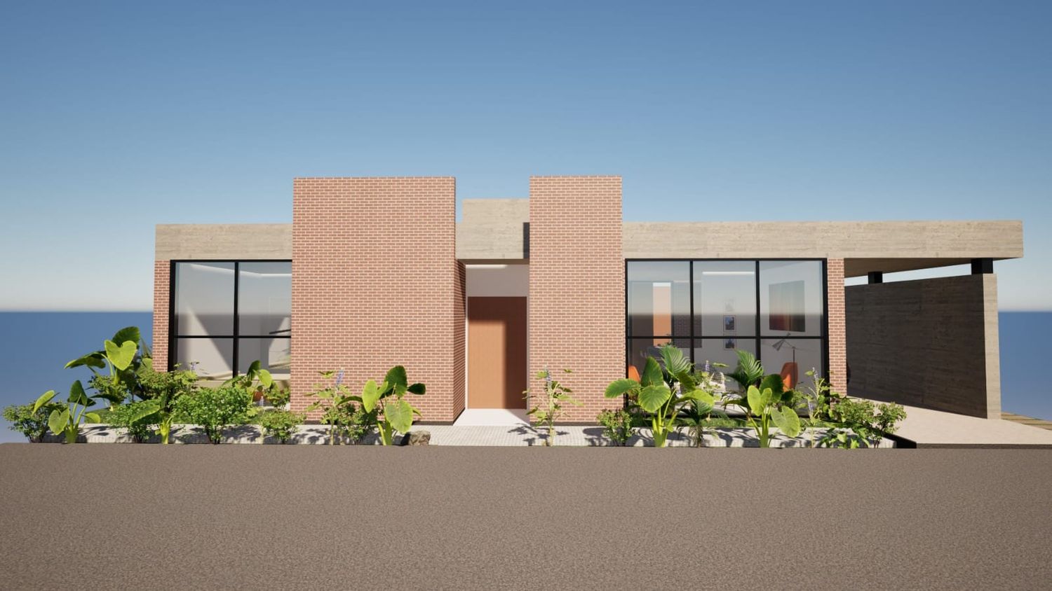 Aesthetically it is a house finished in brick on one floor and large windows overlooking the city.