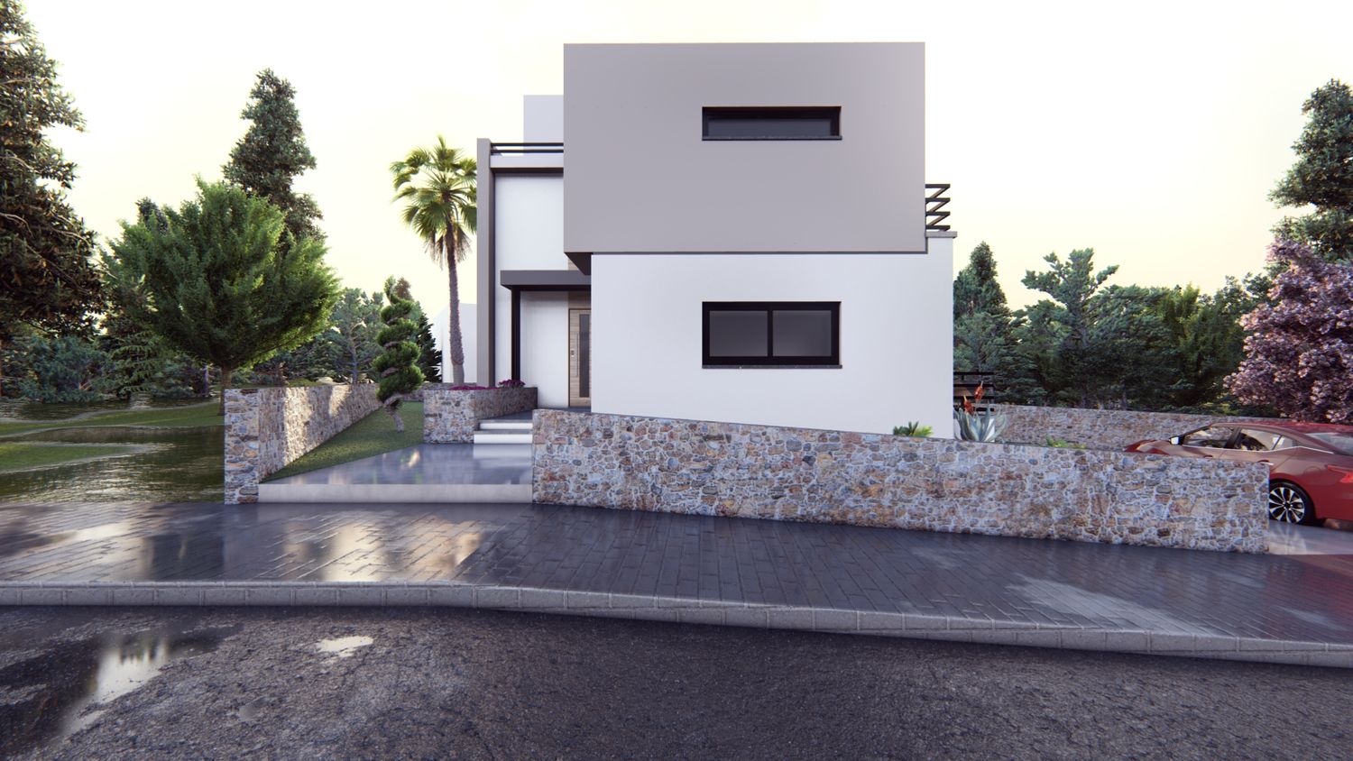 This residence offers 190 square meters of living space in harmony with the calm nature of Doğancı, North Cyprus. Throughout the planning process, privacy and individual comfort were prioritized; the horizontally and vertically expanding mass was divided to respond to the diverse needs of its users. The interiors are supported by openings that maximize natural light, while the soft transitions established with the exterior allow every corner of the home to breathe.
