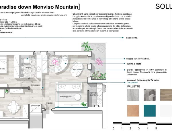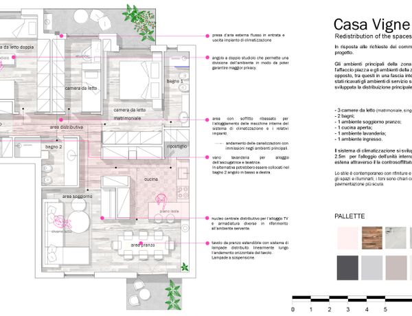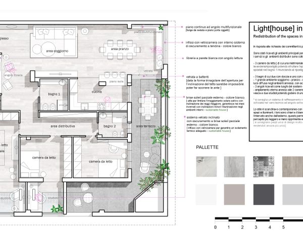 redistribution of the spaces in a top-floor apartment with terrace