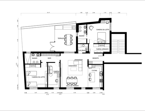 Negli allegati la pianta del progetto e lo stato attuale prima della ristrutturazione, sono accettati eventuali piccoli spostamenti delle pareti o soluzioni interessanti.
