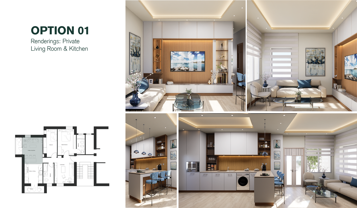 In addition, you will receive two alternative interior design proposals, presented through detailed renderings.