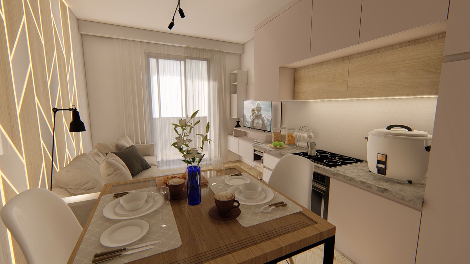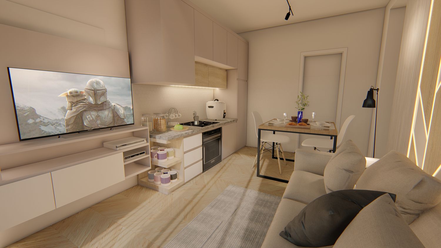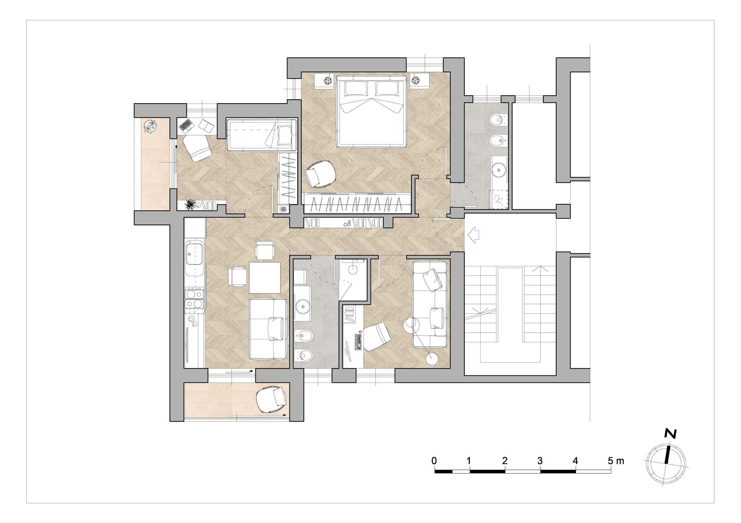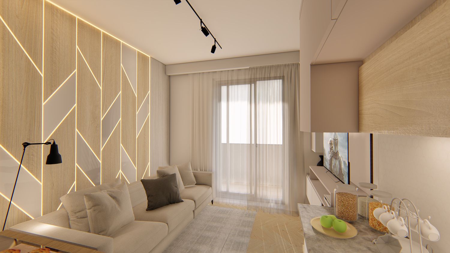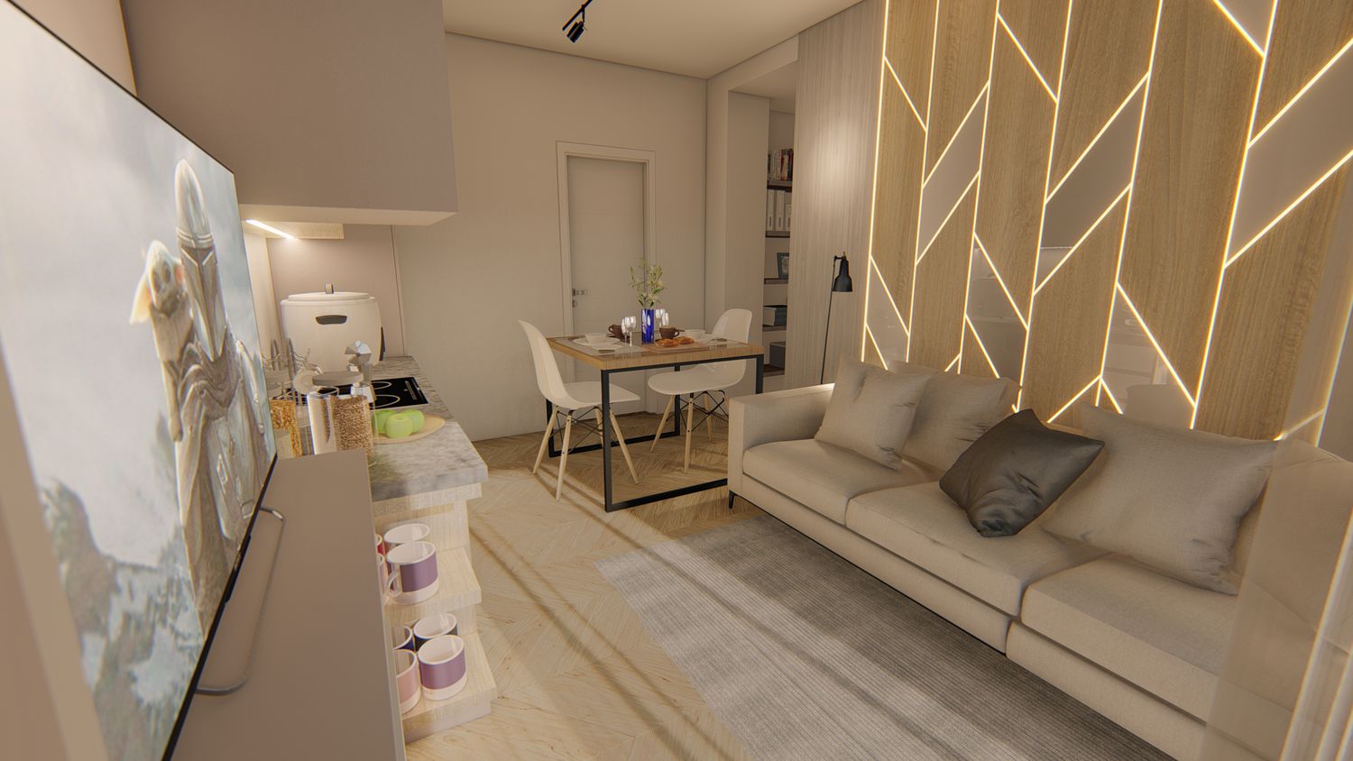 6. Trasformazione della camera grande attuale in area living-cucina, affacciata sul balcone a sud;