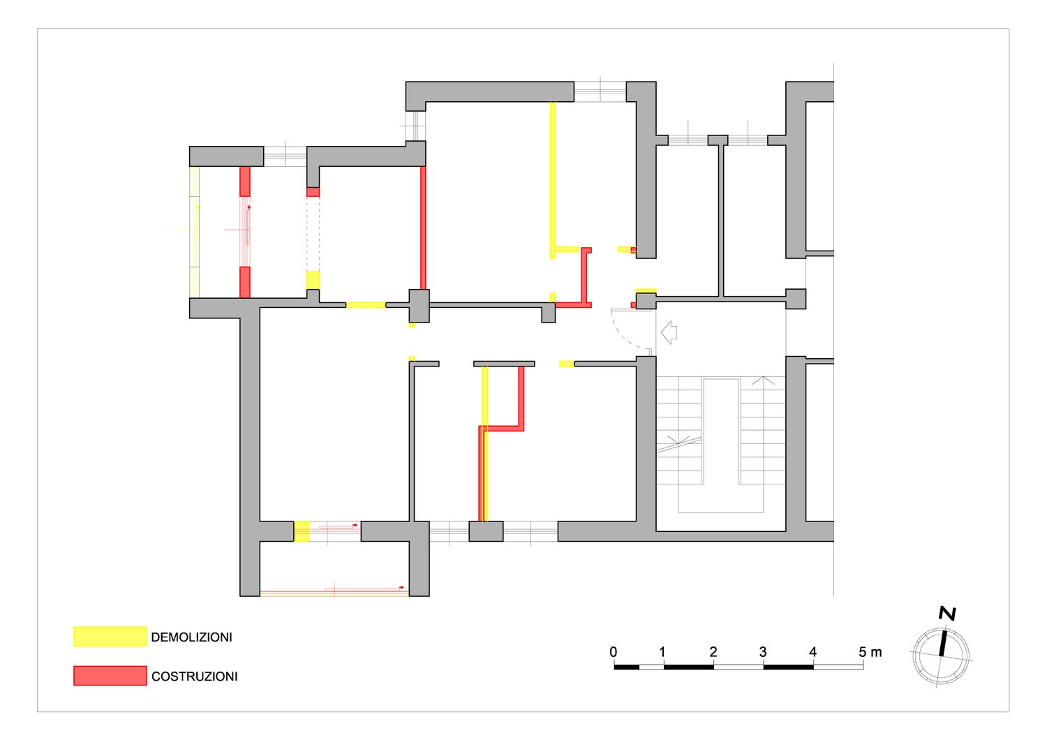 4. Modifica alla tramezzatura del bagno, per permettere l'inserimento di una comoda doccia;