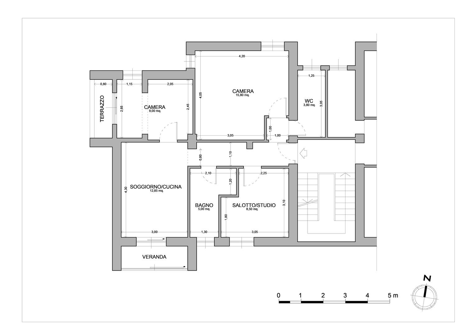 5. Modifica alla veranda, per creare un balcone e una cameretta comoda e dotata delle dimensioni minime di legge (9 mq);