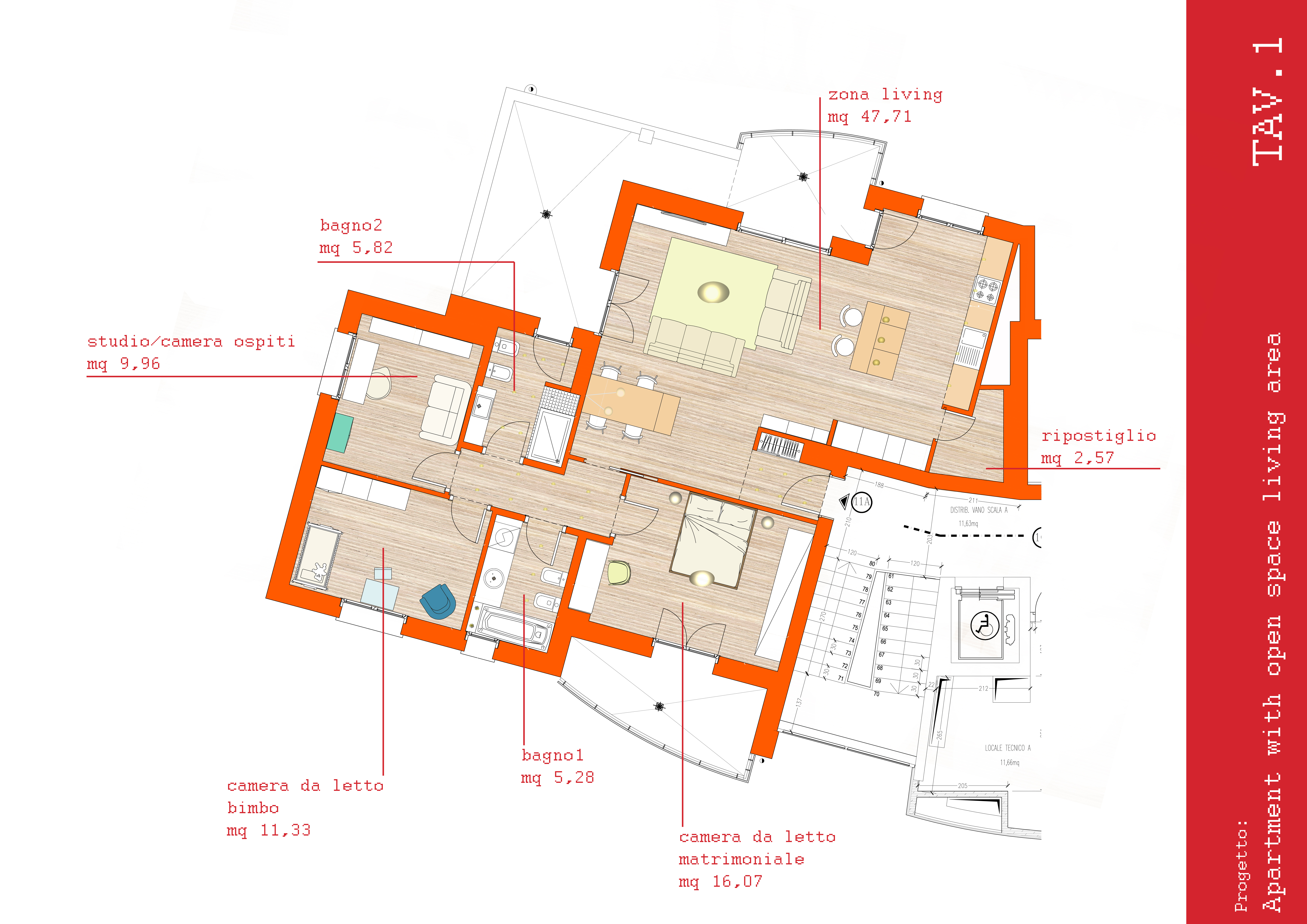Per quanto riguarda le altre stanze: nella camera LETTO 1 vorremmo avere un piccolo angolo studio. Le altre stanze da letto sono quelle del nostro bimbo di due anni (LETTO2) e uno studio, che occasionalmente dobbiamo poter usare anche come camera degli ospiti (LETTO3).