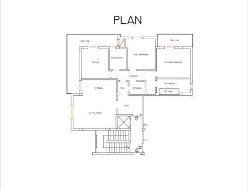 Opposite the kitchen entrance, a small utility room (or pantry) is to be included for additional storage. A corridor leads to the other areas of the apartment.