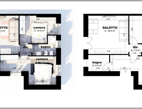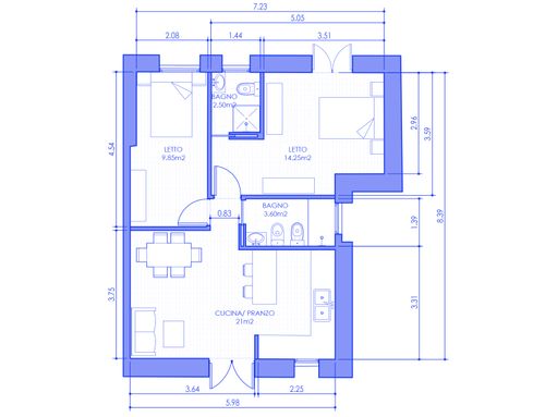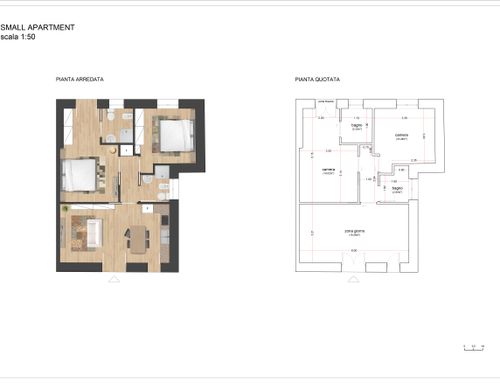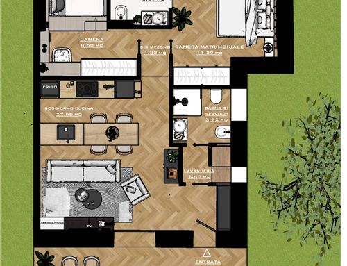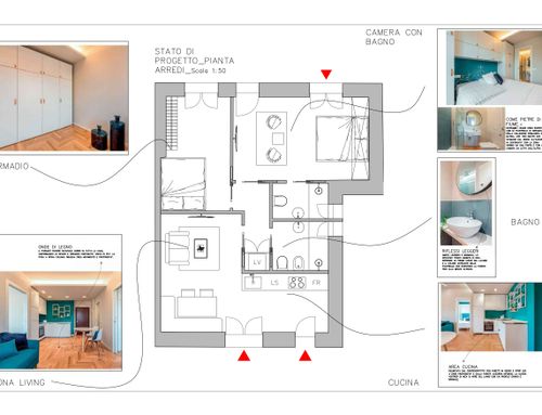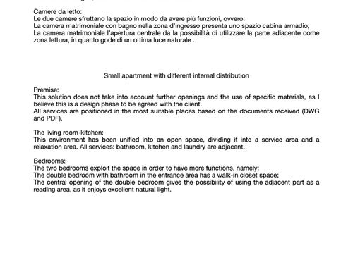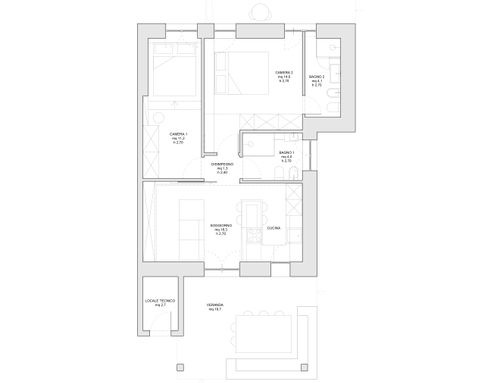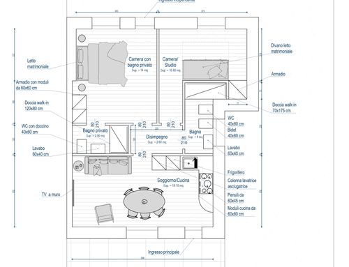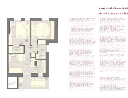Tutti gli ambienti dovranno essere finestrati. Nel bagno principale o nell'eventuale disimpegno vorrei anche ricavare (se possibile) un vano per la lavatrice e l'asciugatrice (sovrapposte).