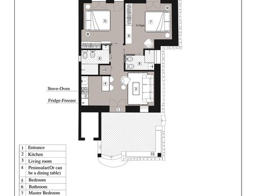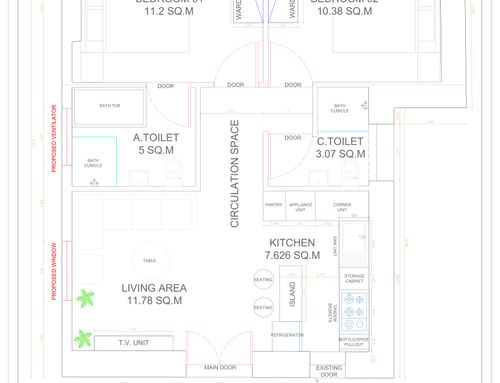 Todas las habitaciones deben tener ventanas. En el baño principal o en el posible pasillo, también me gustaría crear (si es posible) un espacio para la lavadora y la secadora (apiladas).