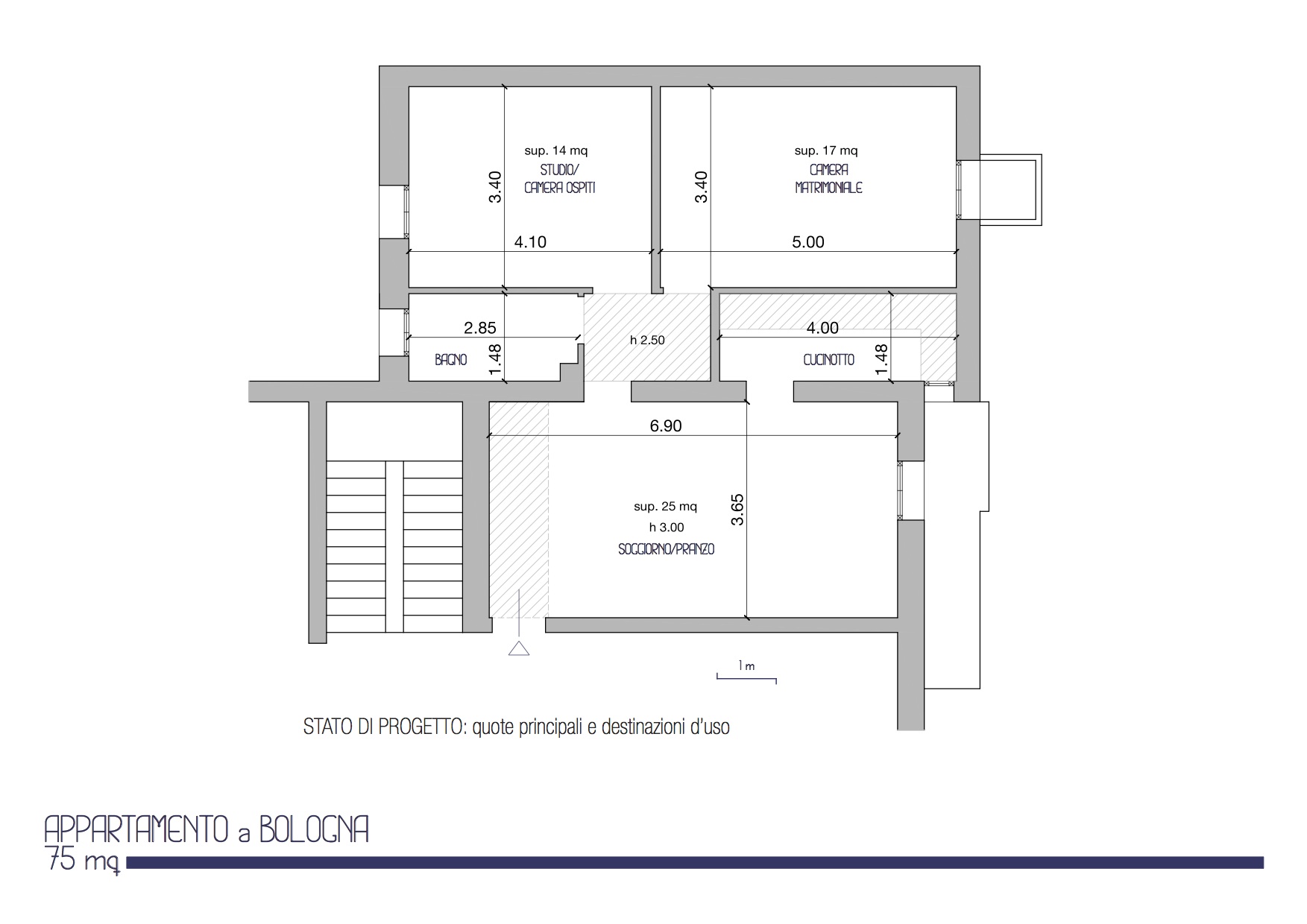 La mia idea era di avere uno spazio giorno il più ampio possibile (eliminando la parete fra ingresso e sala).