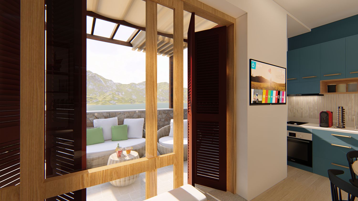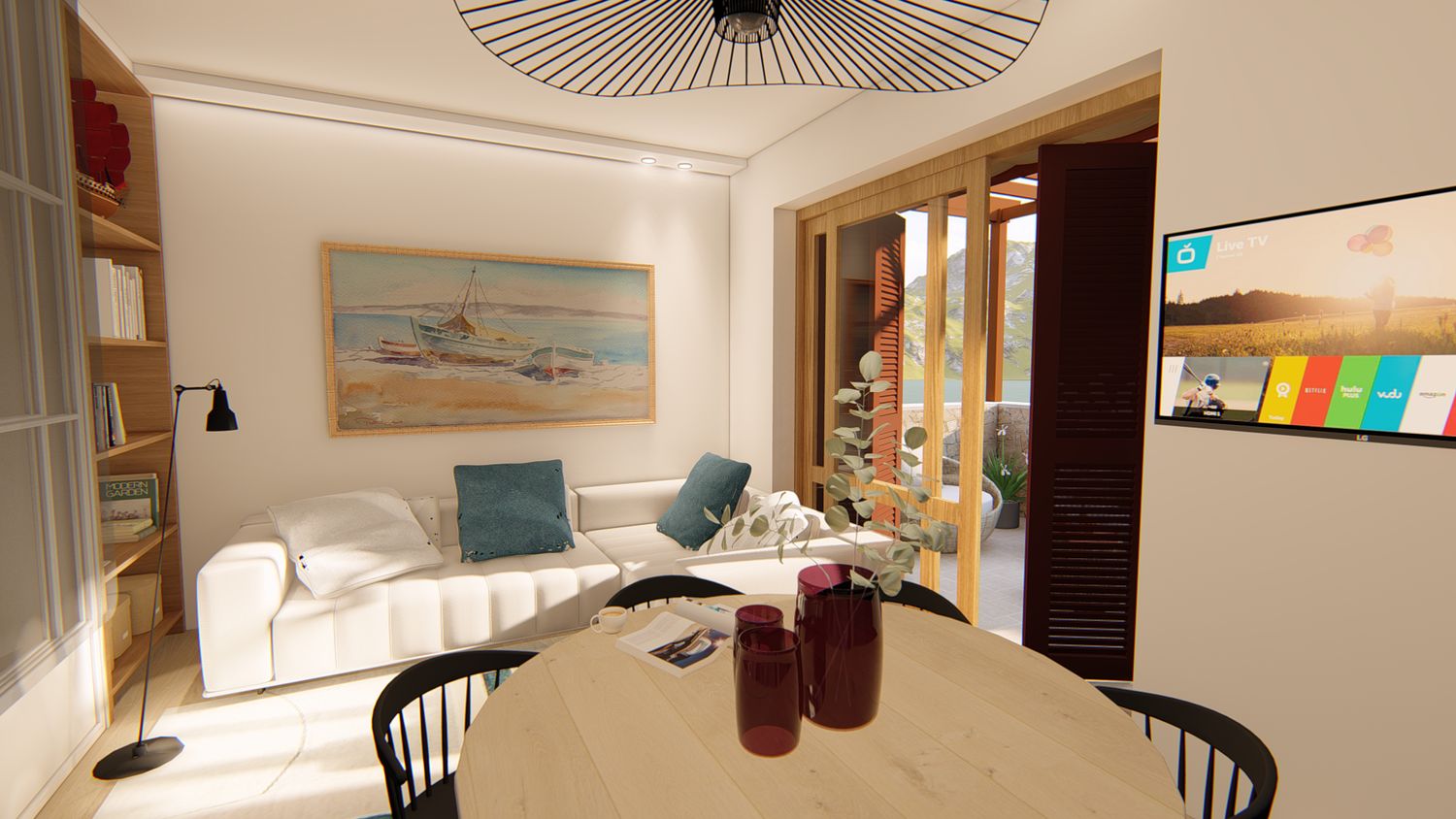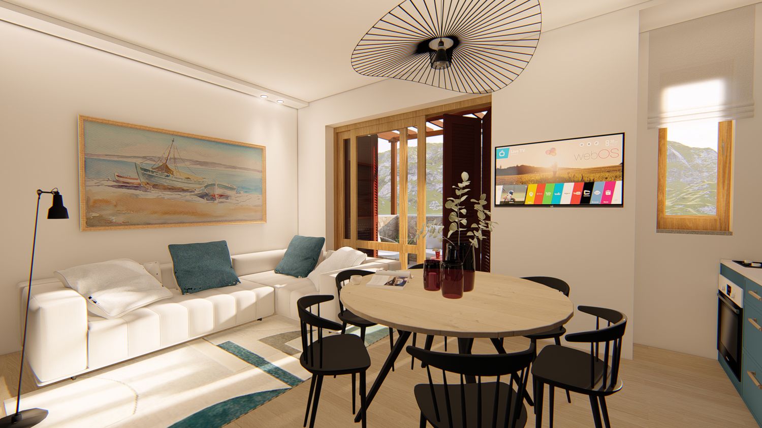 5. Modifica delle aperture e creazione di una unica porta finestra: se consentito dalle norme paesaggistiche locali, si prevede di creare una porta finestra ampia e con anta scorrevole.