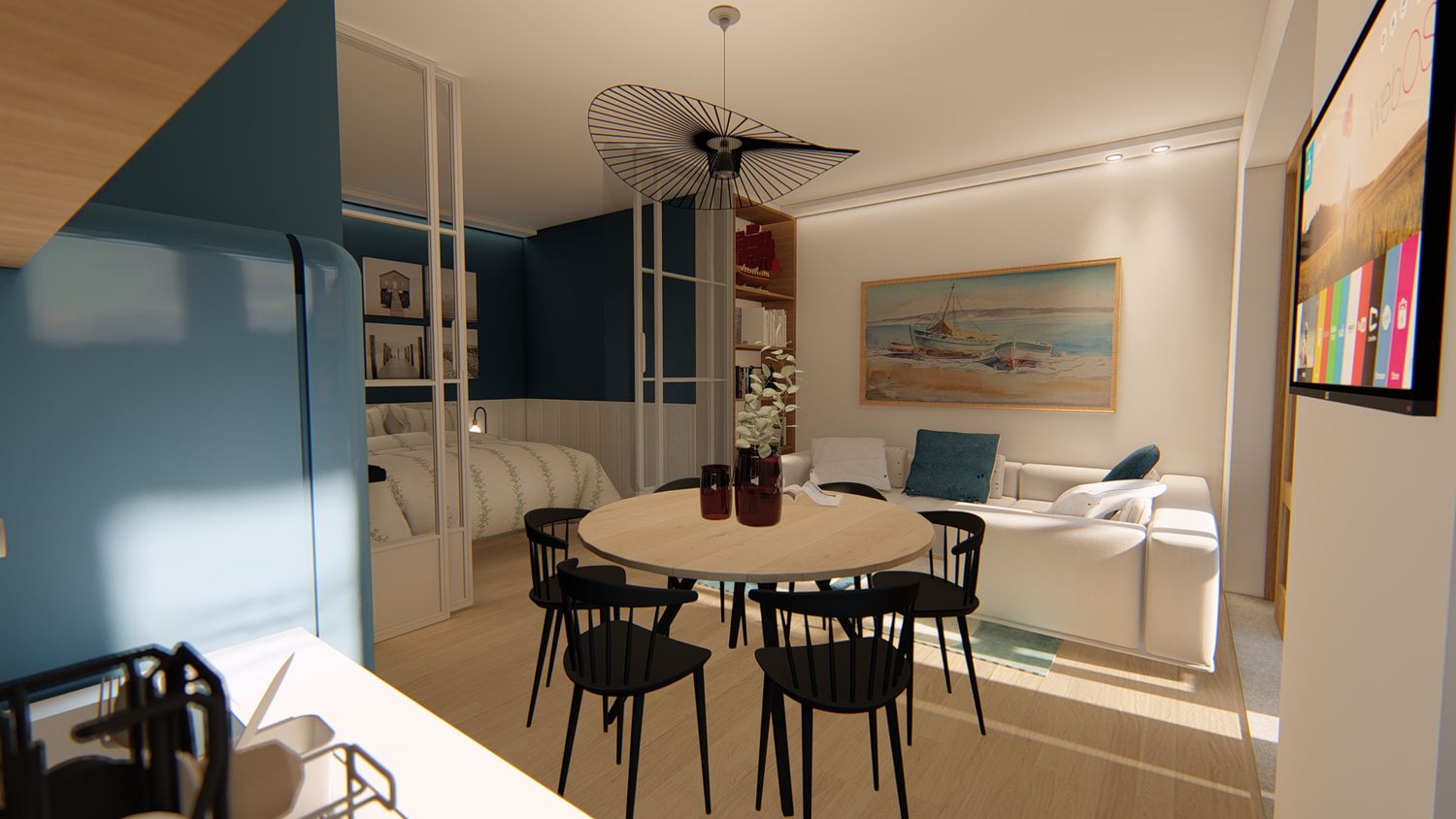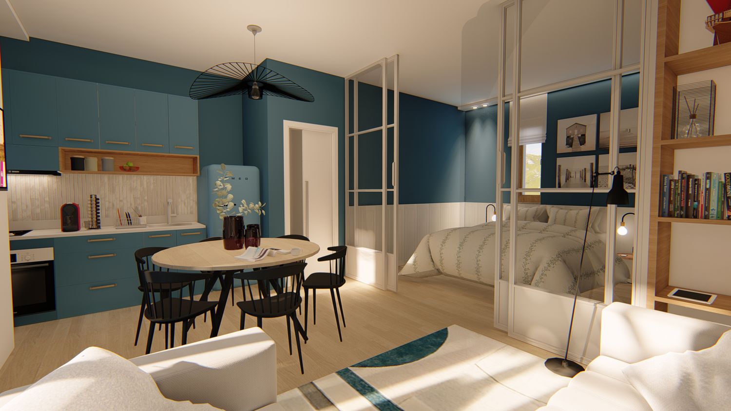 3. Inserimento di un divano letto, per trasformare il living in area notte aggiuntiva in modo pratico e veloce;