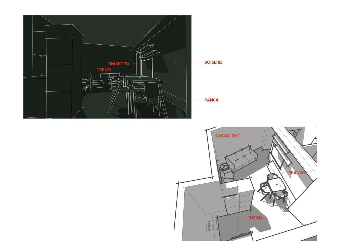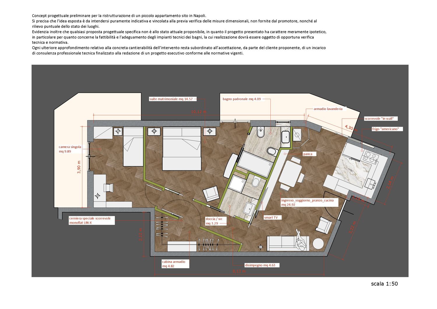 Concept progettuale preliminare per la ristrutturazione di un appartamento nel Comune di Napoli.
