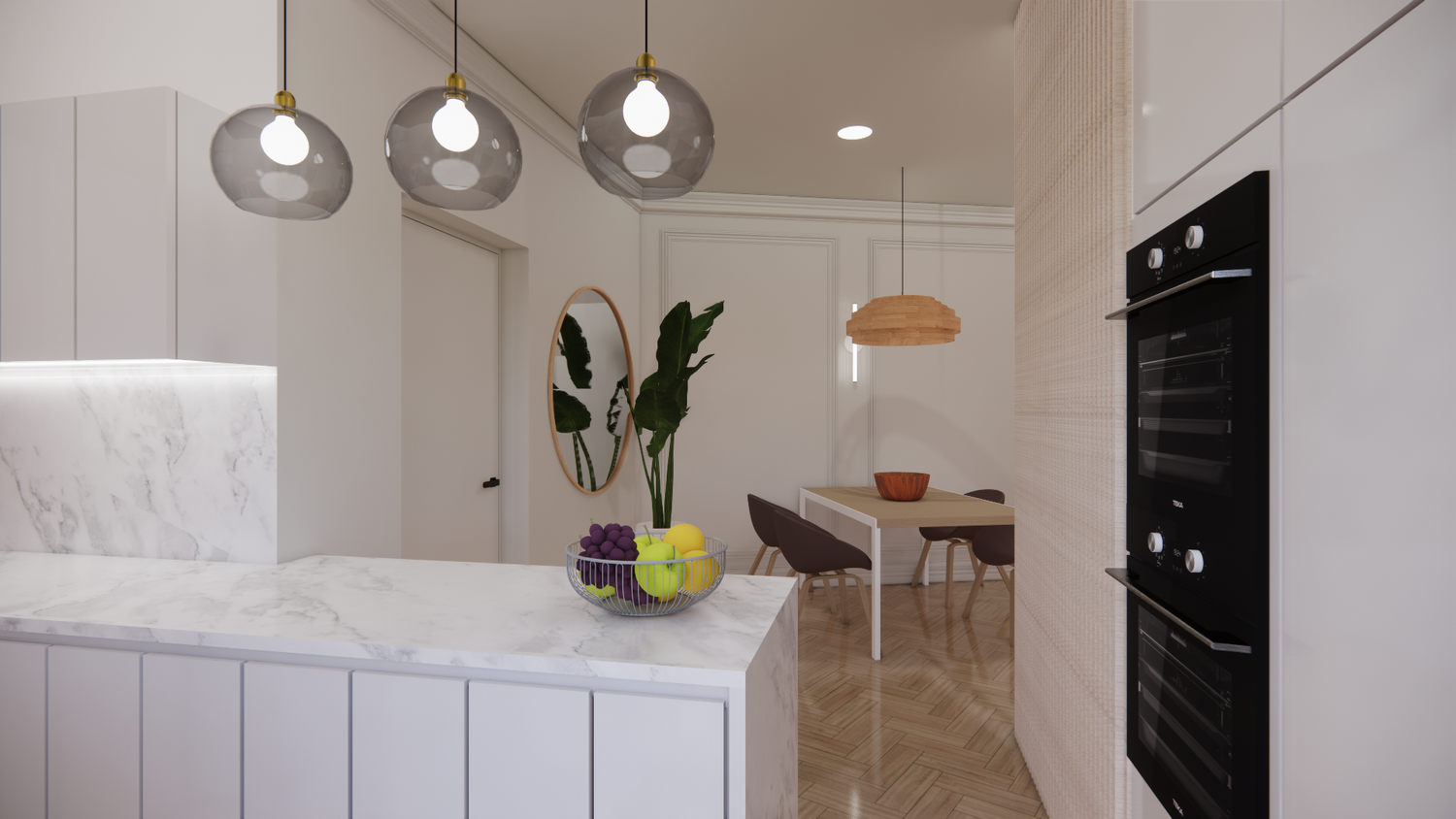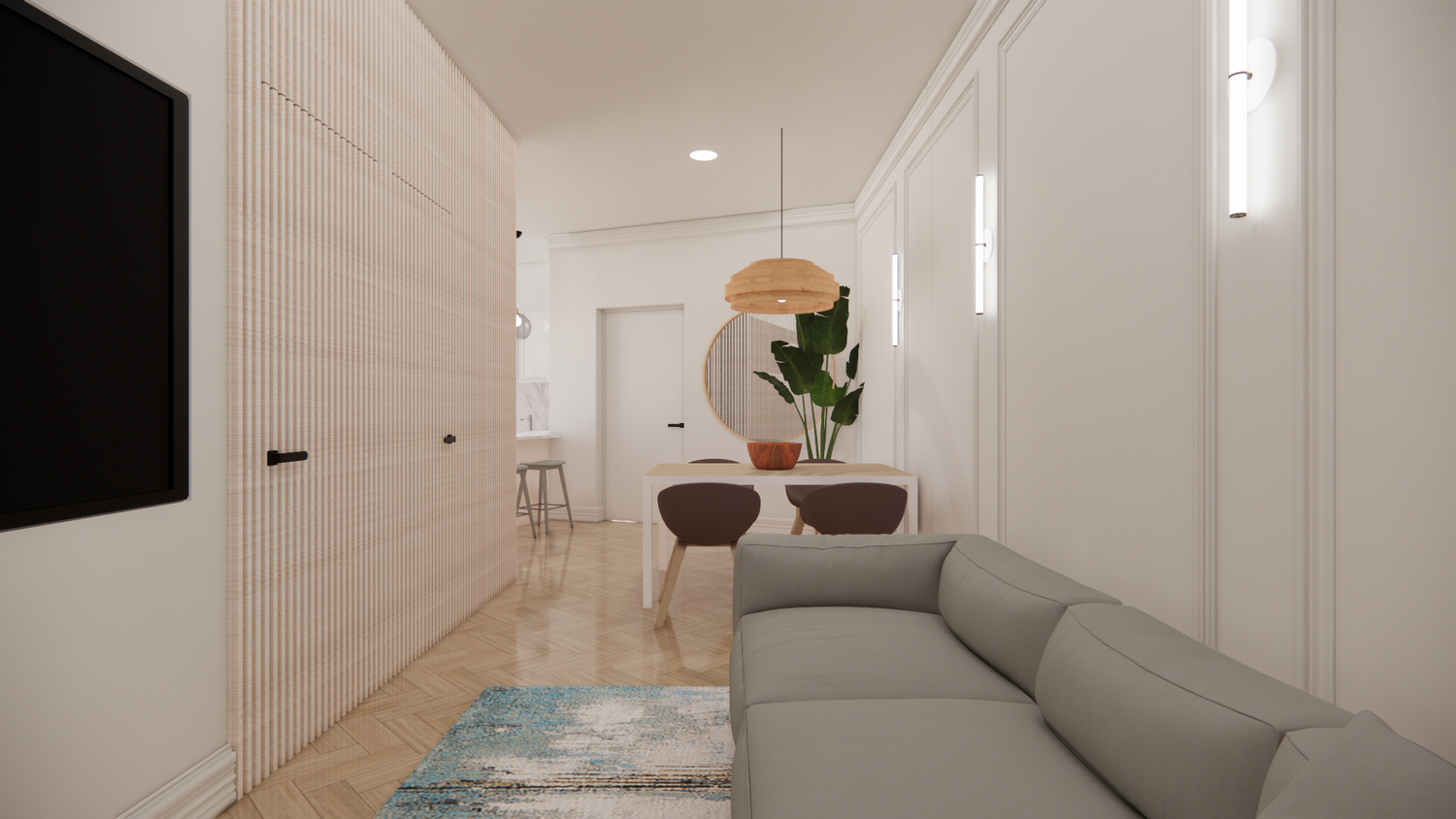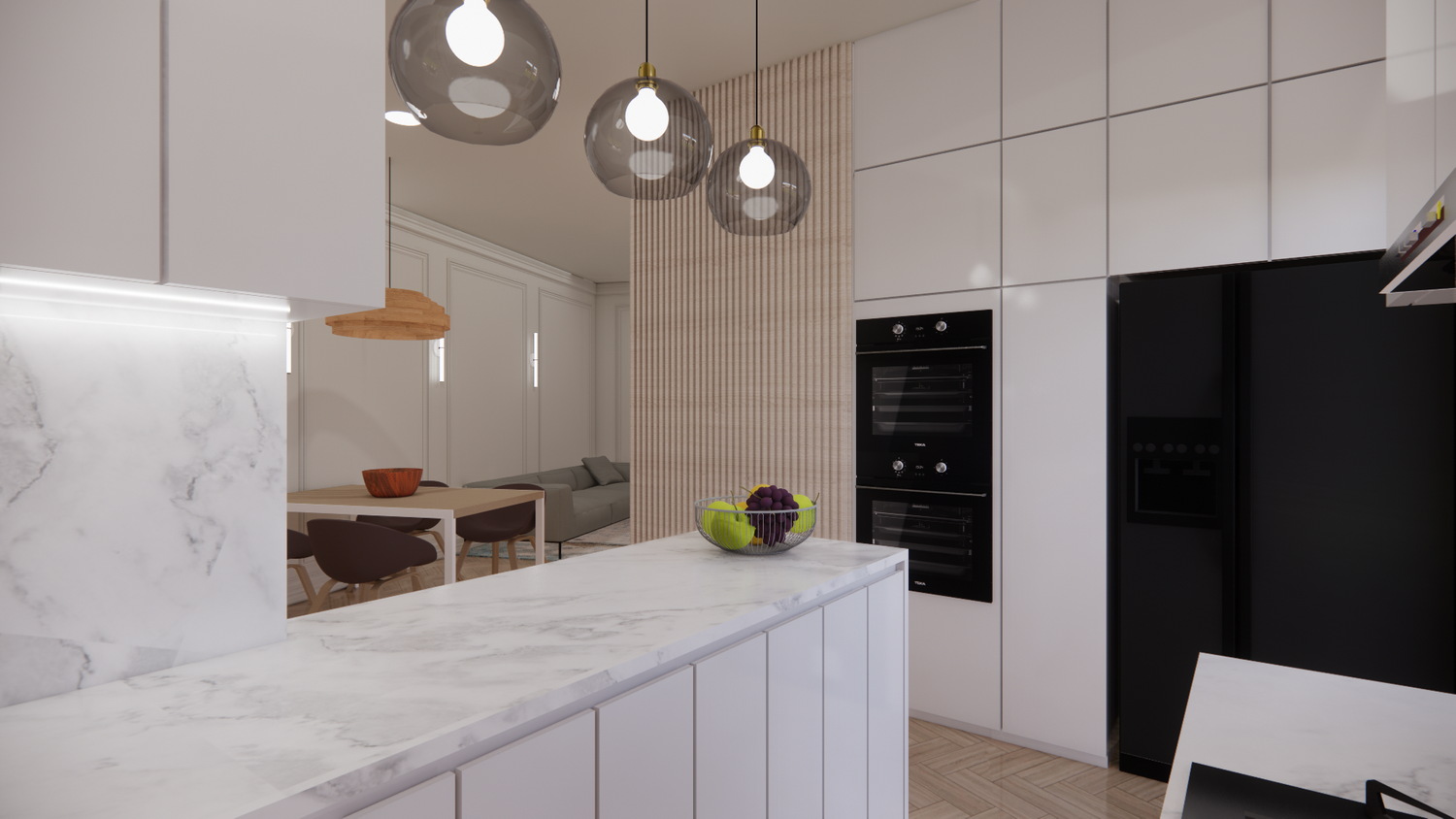 The design fully addresses the client’s needs and preferences, resulting in a comfortable, functional, and contemporary space enhanced by details that revitalize the apartment.