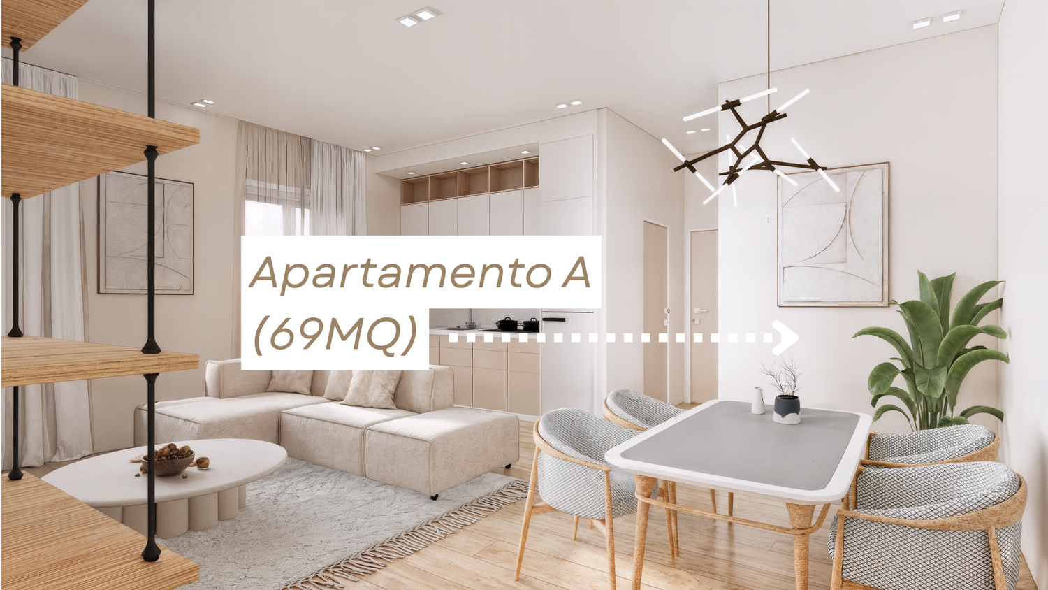 Appartamento A: è composto da soggiorno, sala da pranzo, cucina, bagno, lavanderia, camera da letto 1, camera da letto 2 e ripostiglio.