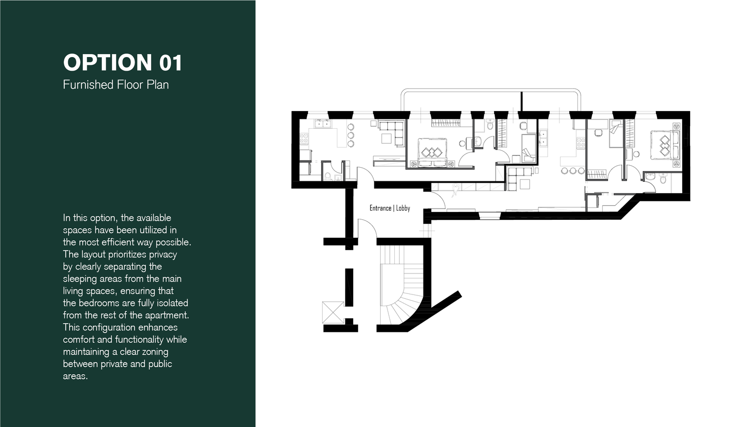 You are going to receive three of the best possible design solutions for your apartment. Each option has been carefully studied and developed to ensure optimal use of space, functional zoning, and overall comfort. The proposed solutions offer different layout approaches, allowing you to compare and choose the option that best suits your lifestyle, privacy needs, and storage requirements while maintaining a high level of efficiency and design quality.