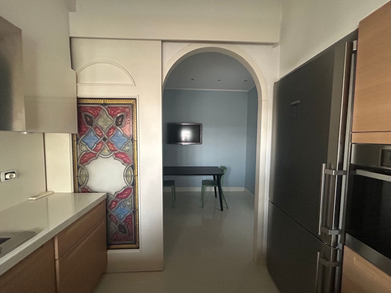 La cocina deberá abrirse lo más posible hacia el salón (quizás separada por una gran puerta o pared de vidrio corredera). También nos gustaría incluir una isla, pero sin mover los muebles de la zona indicada.