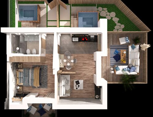 Più in dettaglio, è richiesto uno stile di arredamento che sia moderno, che metta in risalto la luminosità degli ambienti e che presenti un richiamo alla città o al territorio, un arredo di design lineare ma elegante, un po’ minimalista con elementi particolari e originali. Alla vista deve dare senso di calore, Relax. Natura. Tempo per sé stessi. Salute. sia pur sempre in Trentino terra delle Dolomiti , le montagne più belle del mondo. Quindi nei pavimenti ci piacerebbe l' uso del legno. I bagni moderni, con doccia a pavimento.