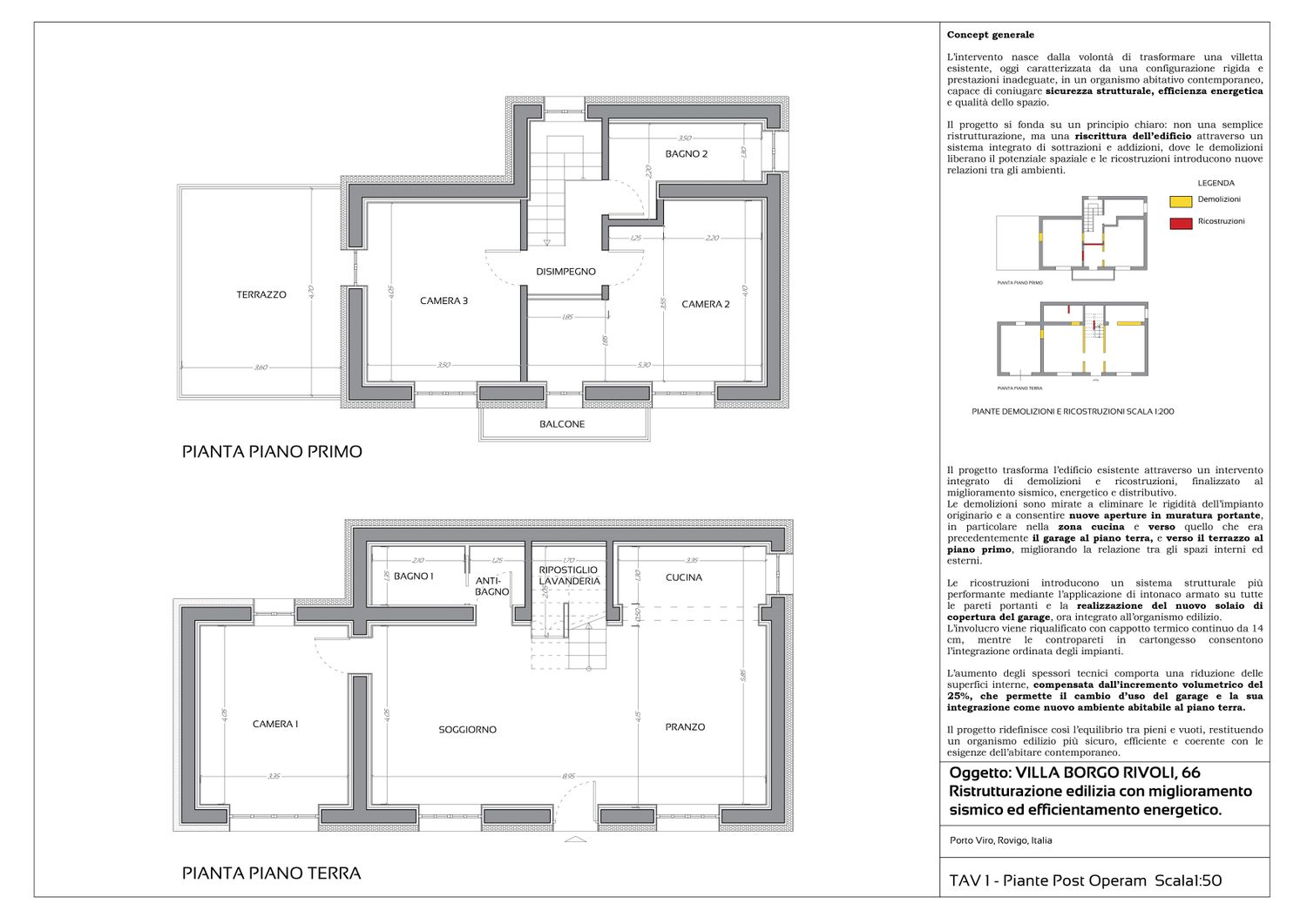 Oggetto: Ristrutturazione edilizia con miglioramento sismico ed efficientamento energetico, con incremento volumetrico ai sensi del “Piano Casa”