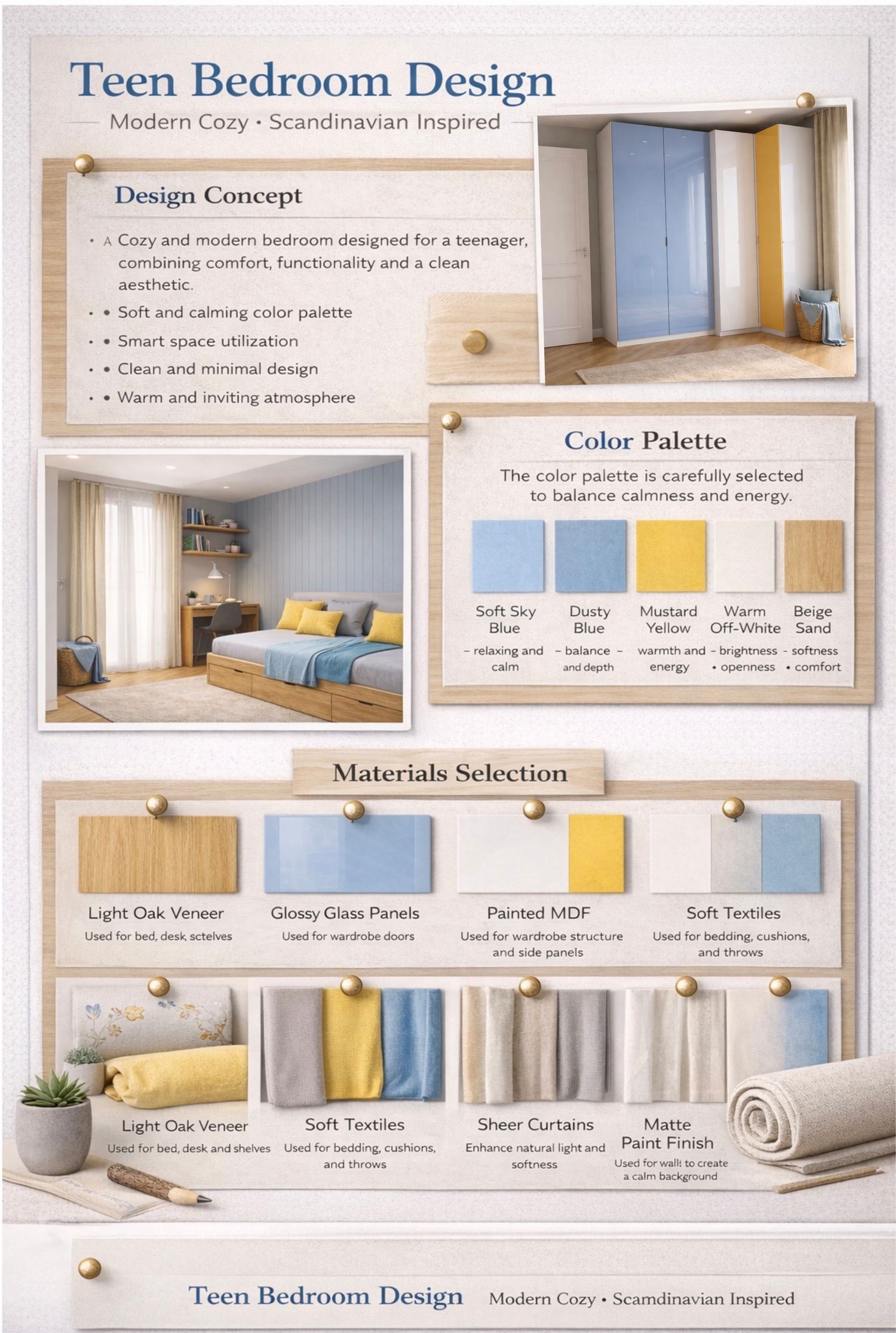 The overall design follows a modern teen style, using turquoise and aquamarine tones to reflect your son's personality, while keeping the space clean, practical, and comfortable.