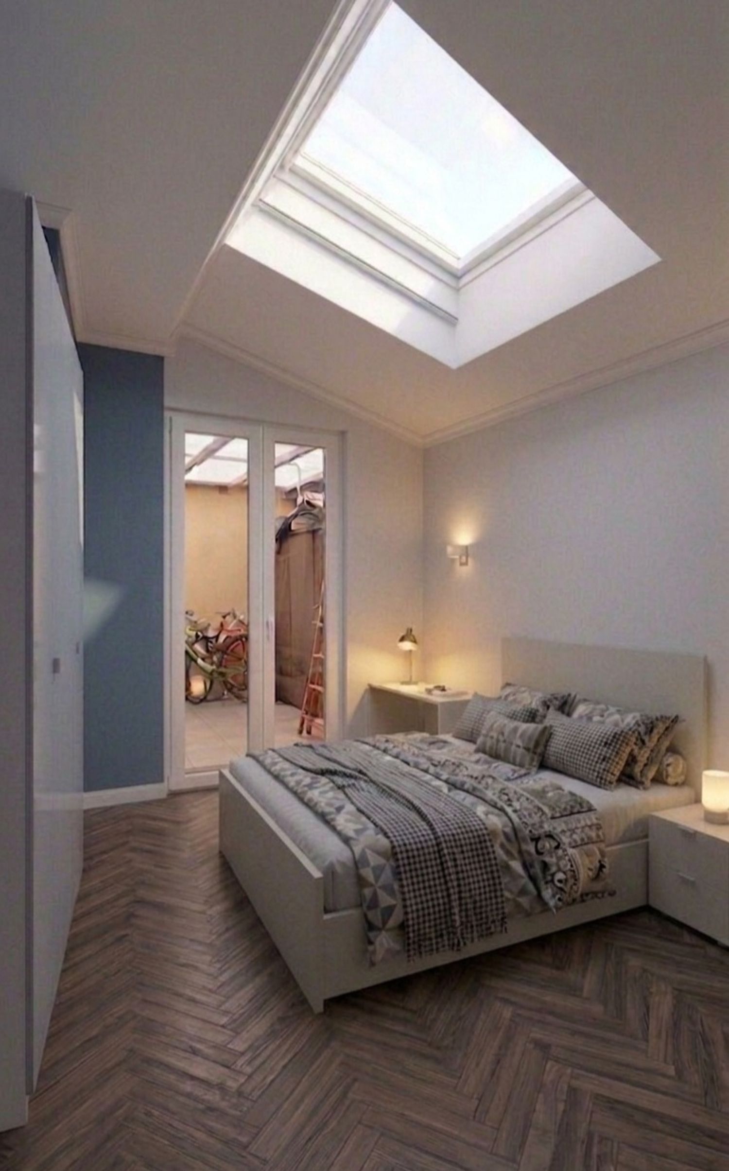 Ceilings: A white skylight, free of natural colors.