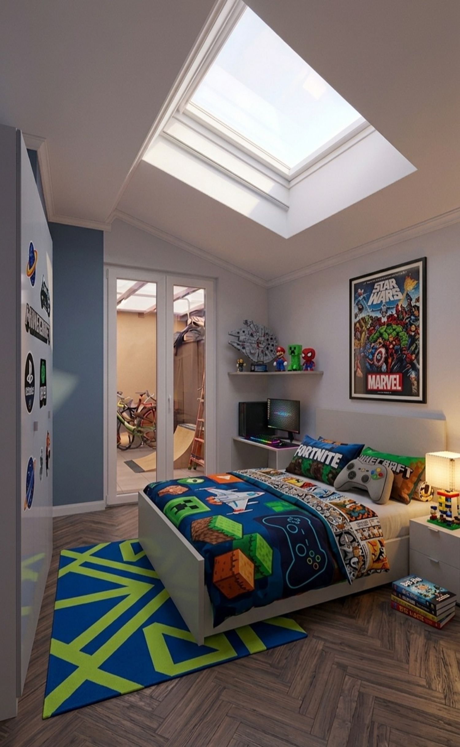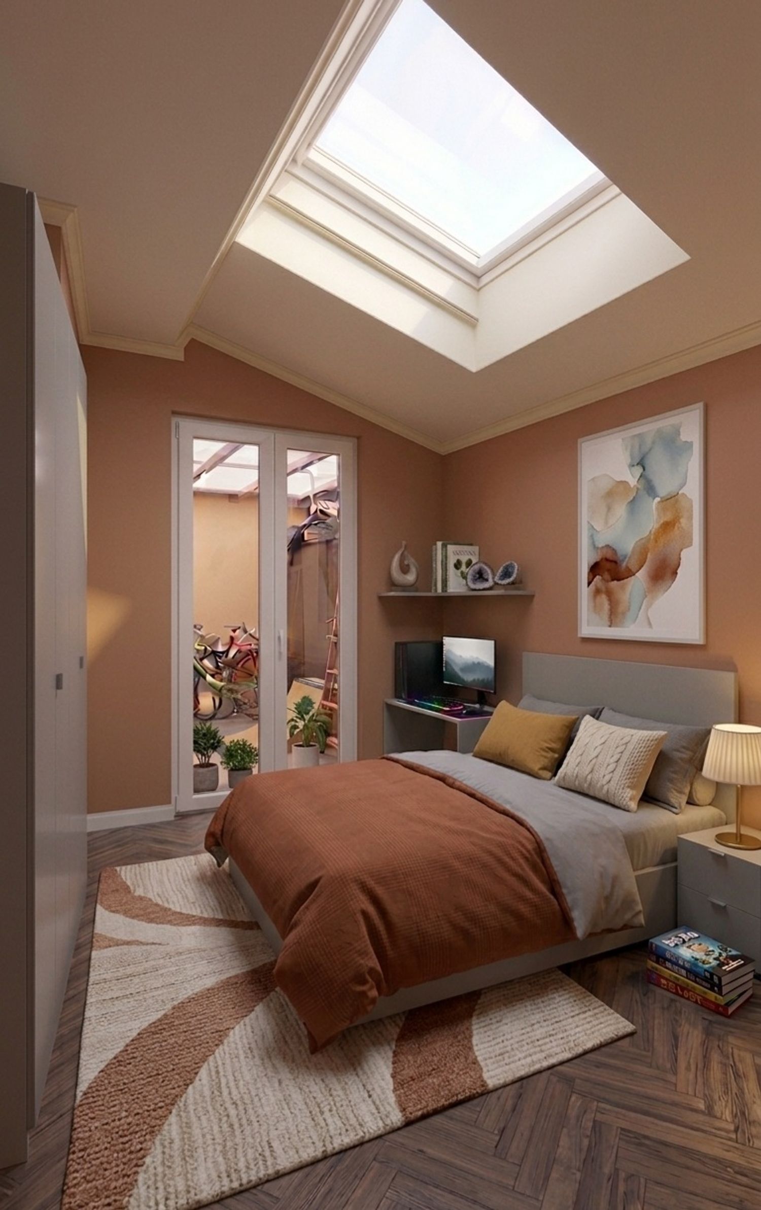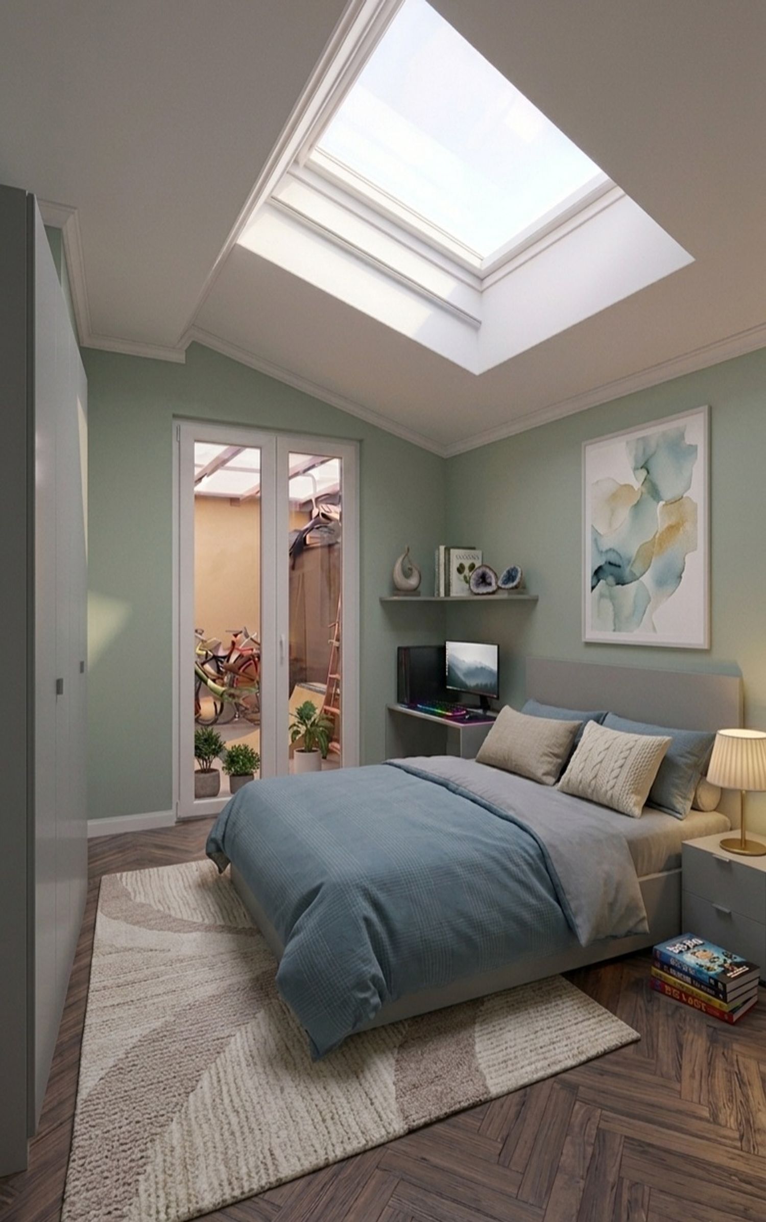 Study desk: Placed under a skylight to take advantage of natural light.