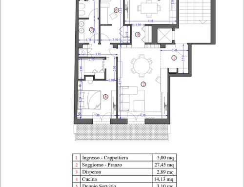 Abbiamo la necessità di riprogettare completamente gli spazi interni, tramite una nuova ripartizione degli stessi, per rendere l’appartamento moderno e funzionale. Vorremmo, inoltre, che l’arredamento della casa avesse uno stile moderno ed elegante che allo stesso tempo renda l’ambiente caldo ed accogliente.