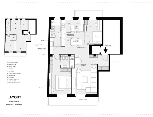We would like the living room to be designed as an environment to relax, watch TV (we would like to place a 65-inch TV), read and welcome friends / relatives for convivial moments. Furthermore, we need a study corner to be created in the living room.