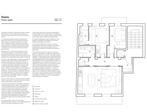 Il soggiorno e la camera matrimoniale, che affacciano su strada, sono molto luminosi. Gli altri locali affacciano su un ampio cortile interno.