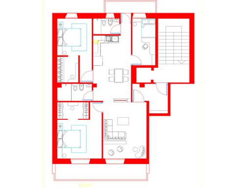 The kitchen must be designed for 3/4 people. In addition, the TV must be present.