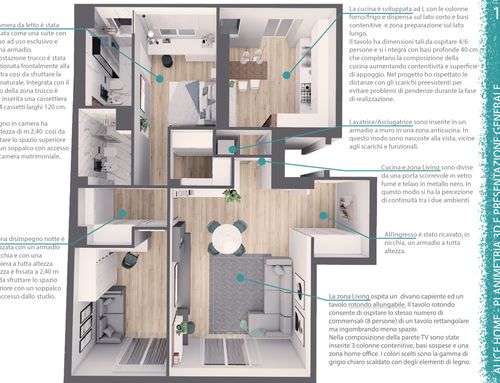 Vorremmo che la zona giorno fosse progettata come un ambiente per rilassarsi, guardare la TV (vorremmo posizionarci una TV da 65 pollici), leggere ed accogliere amici/parenti per dei momenti conviviali. Abbiamo inoltre bisogno che nella zona giorno venga realizzato un angolo studio.