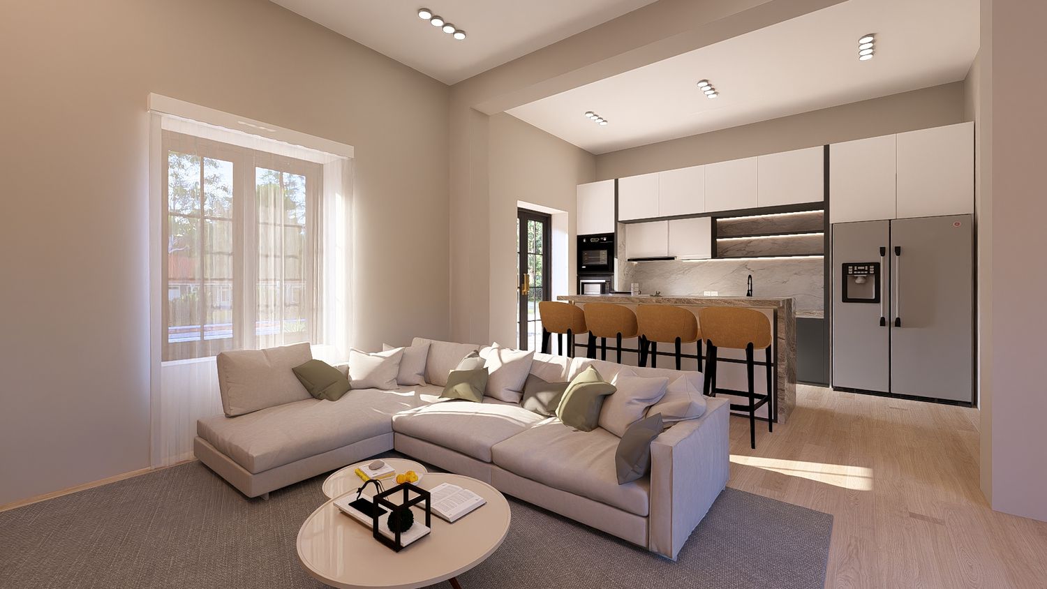 La precedente zona soggiorno, molto grande e dispersiva, è stata ridimensionata e resa più funzionale, mantenendo però un ambiente luminoso e accogliente.