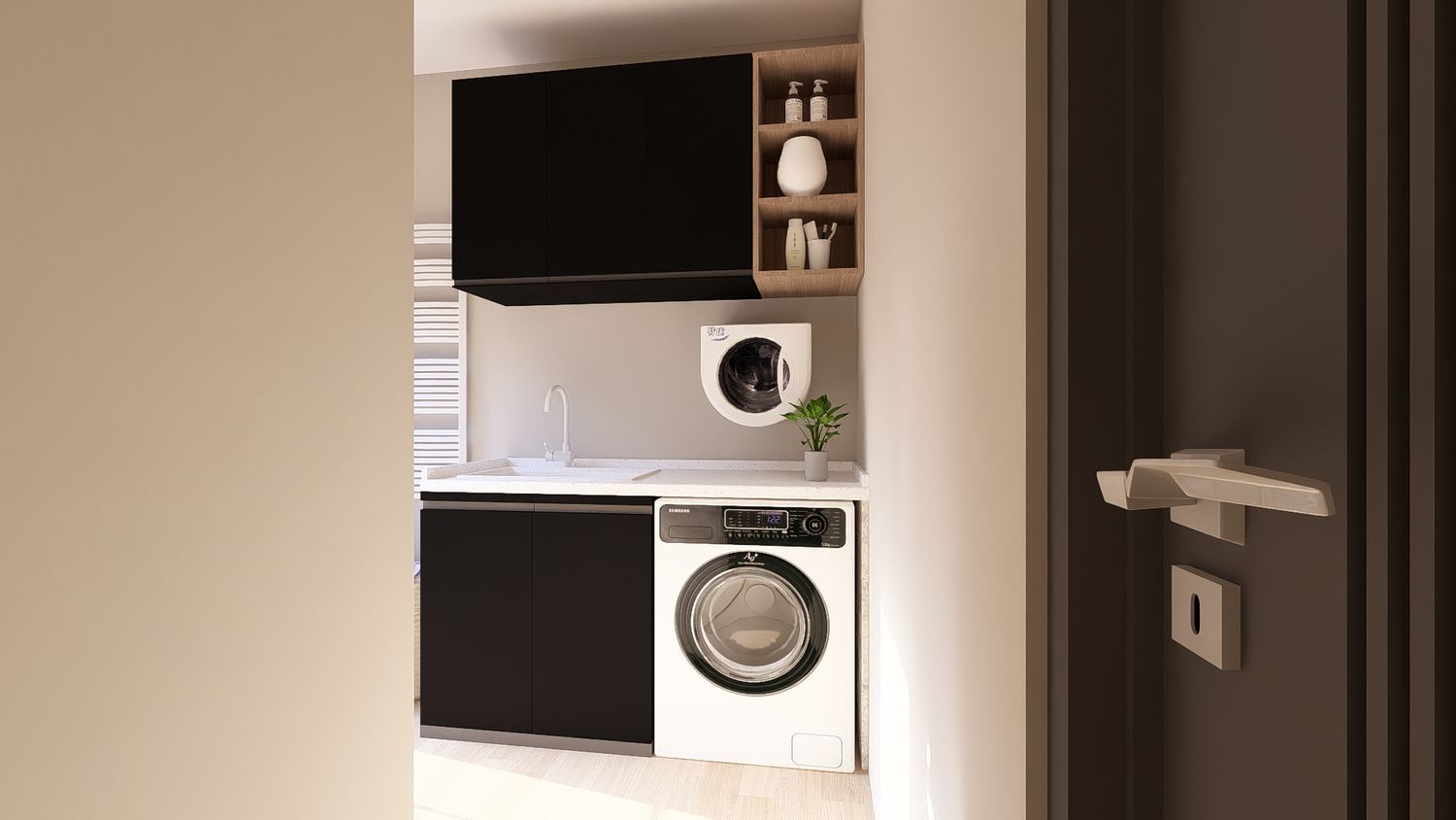 Vicino al balcone, come da Sua indicazione, per una gestione del bucato più pratica.