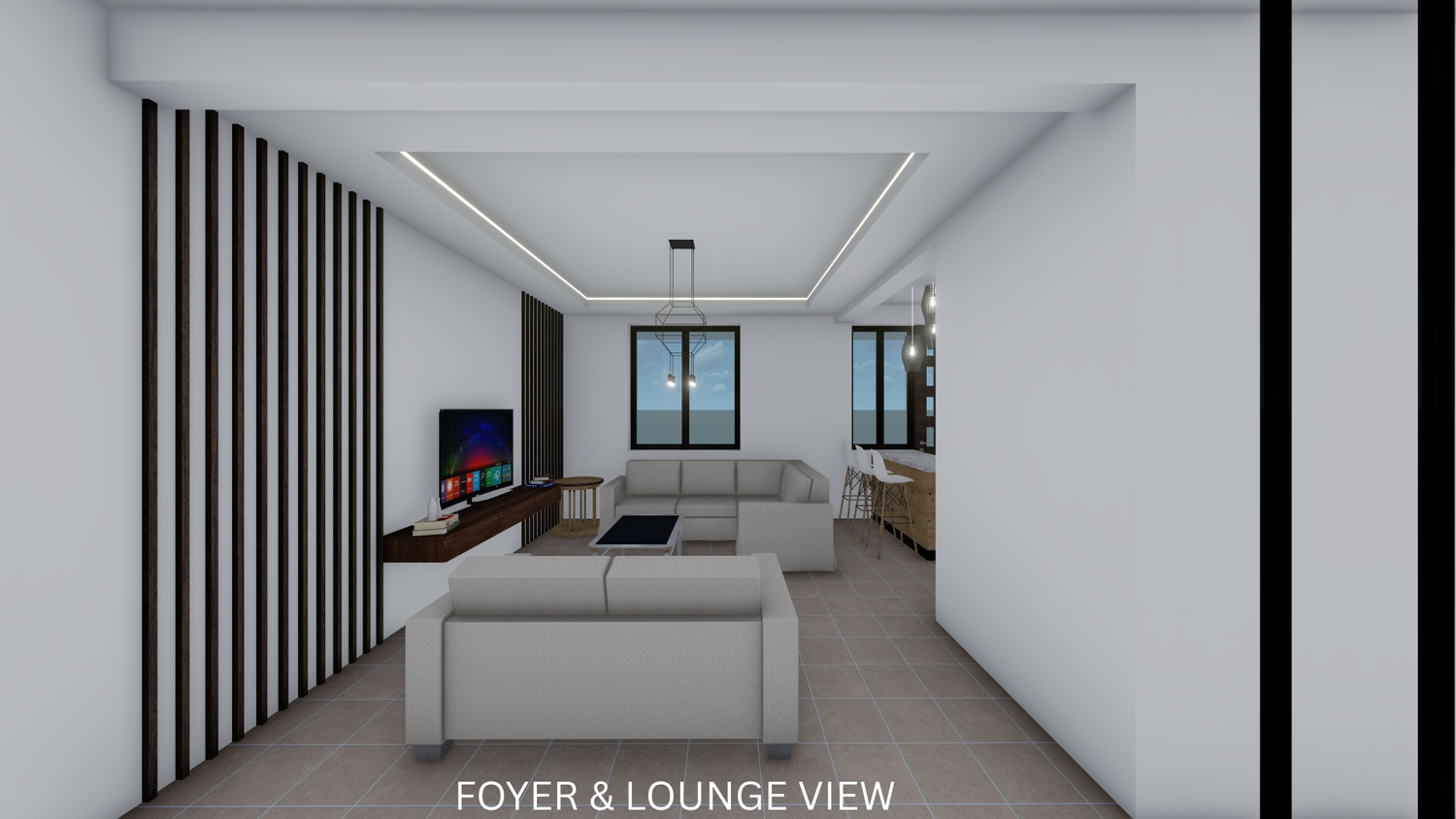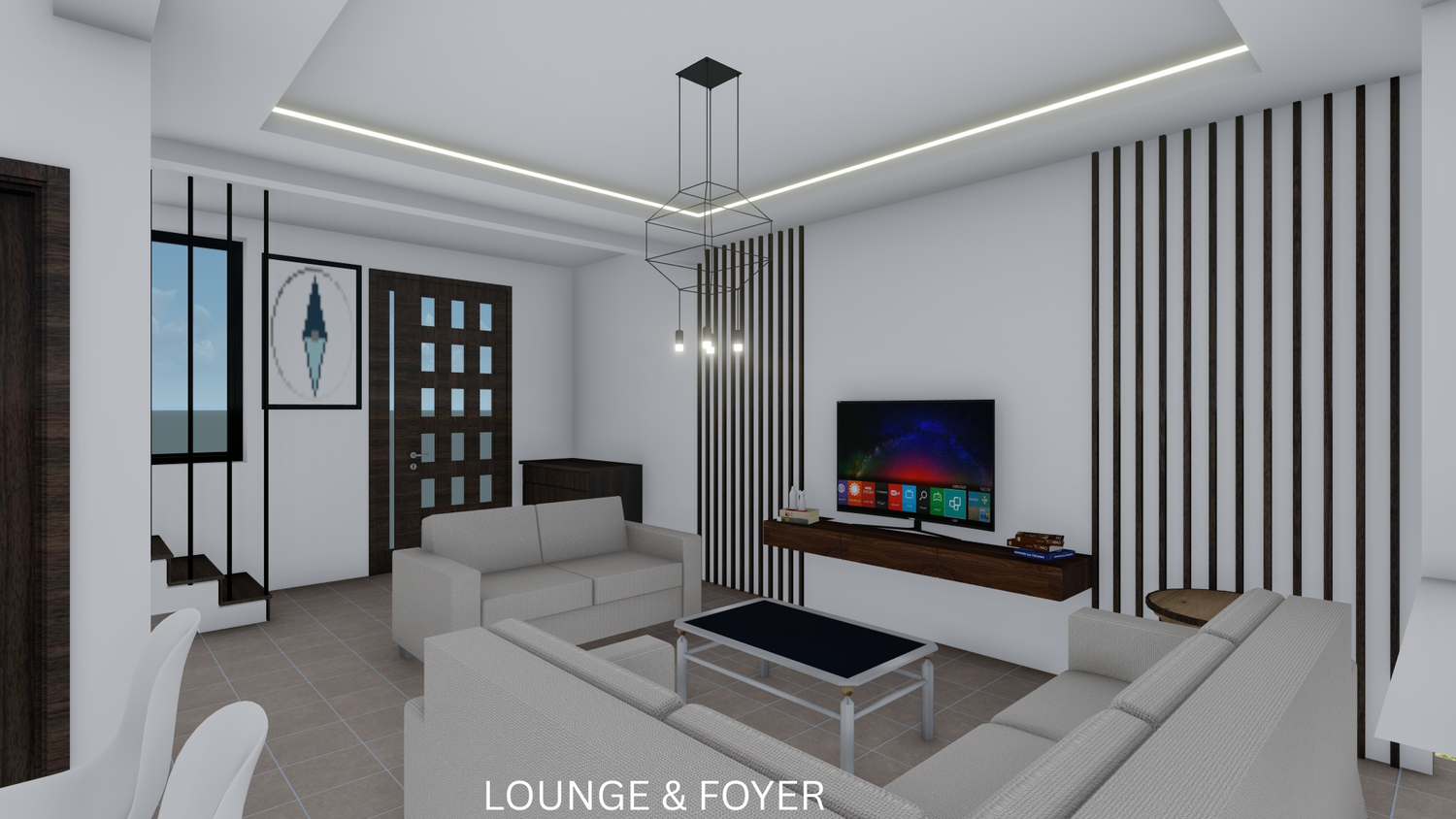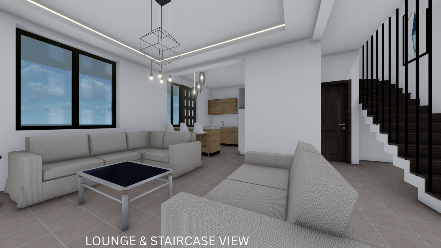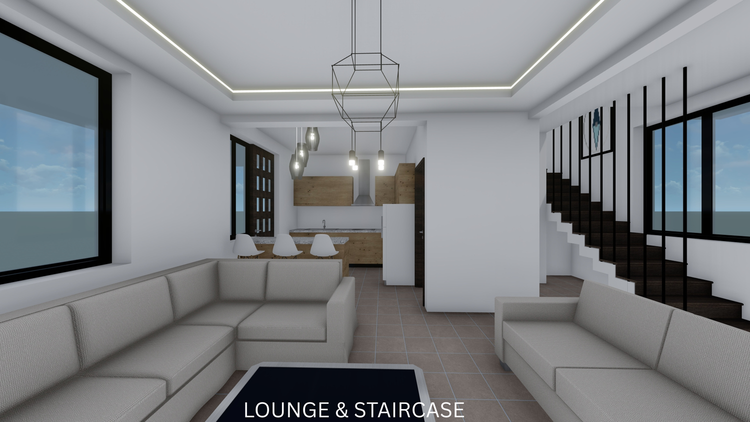 The proposal reorganizes the internal layout in accordance with the client’s brief. A foyer has been introduced to streamline circulation and reduce the lounge area, while the kitchen has been redesigned to include a functional island. The storage room is now adequate and useful. A new modern staircase enhances the spatial quality, with the void underneath efficiently utilized for a WC. The layout now features two bedrooms on the first floor, one of which is a master bedroom with a walk-in closet and ensuite bathroom. Additionally, a laundry area has been added on the first floor for convenient access to the balconies.